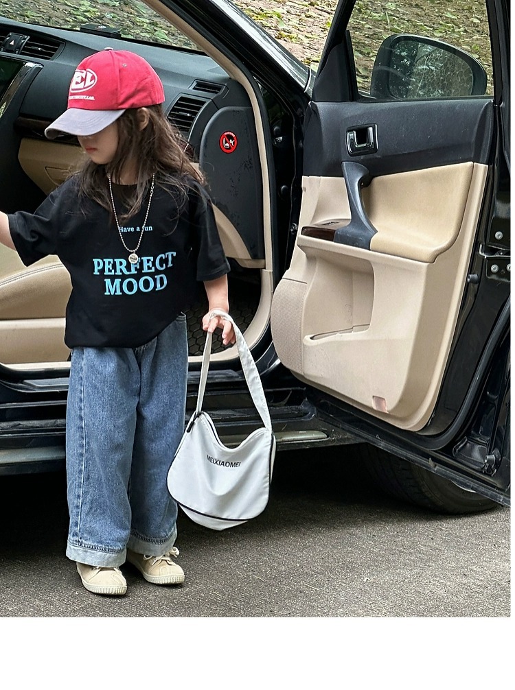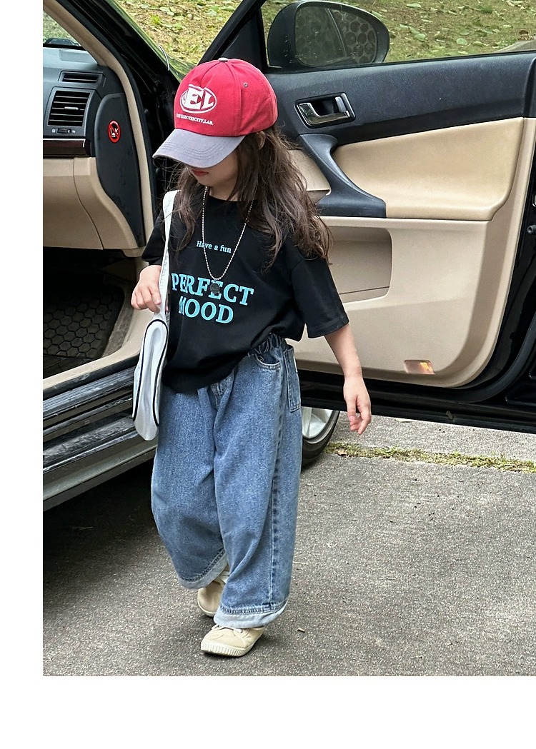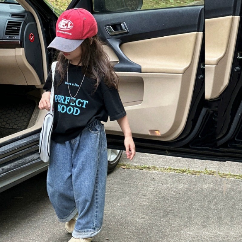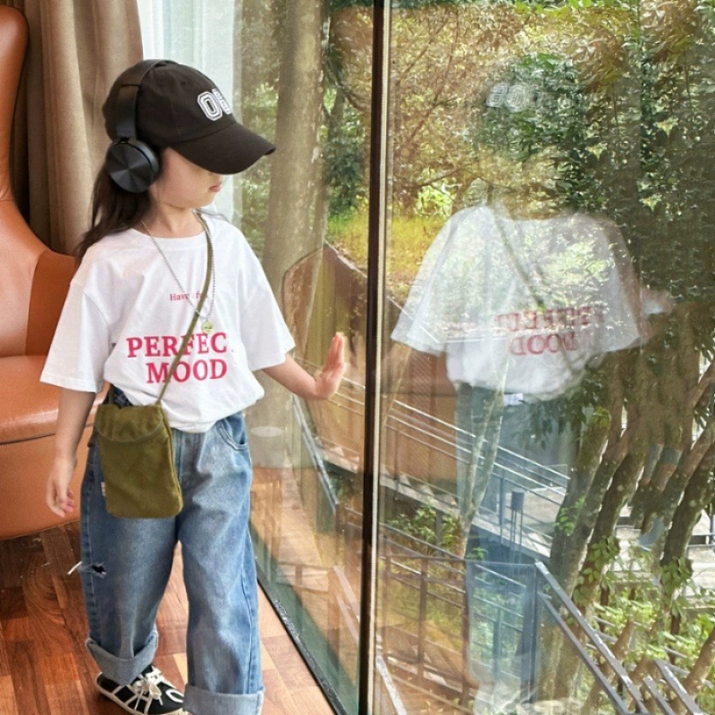 한국식 어린이 편지 반팔 2024 여름 아기 세련 된 캐주얼 탑 걸스 유행 올 매치 티셔츠 루즈스토어 가기