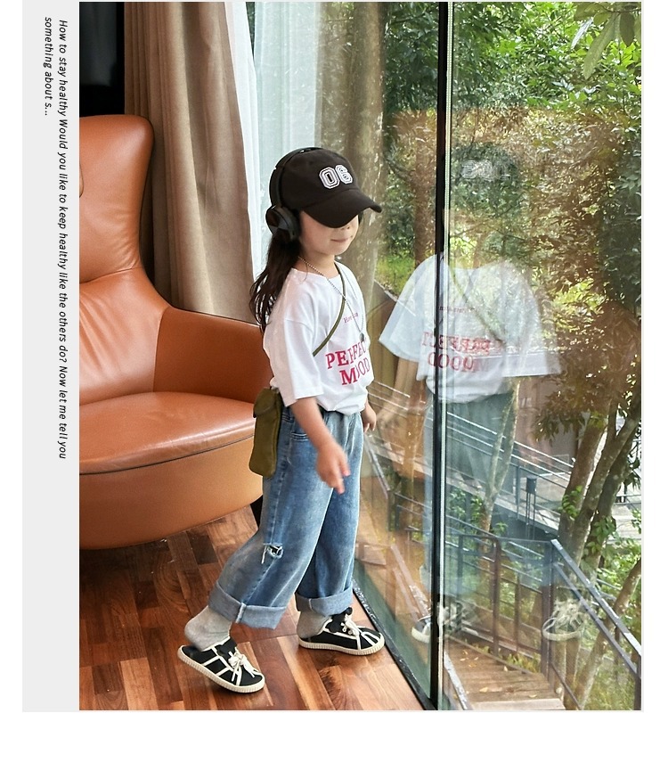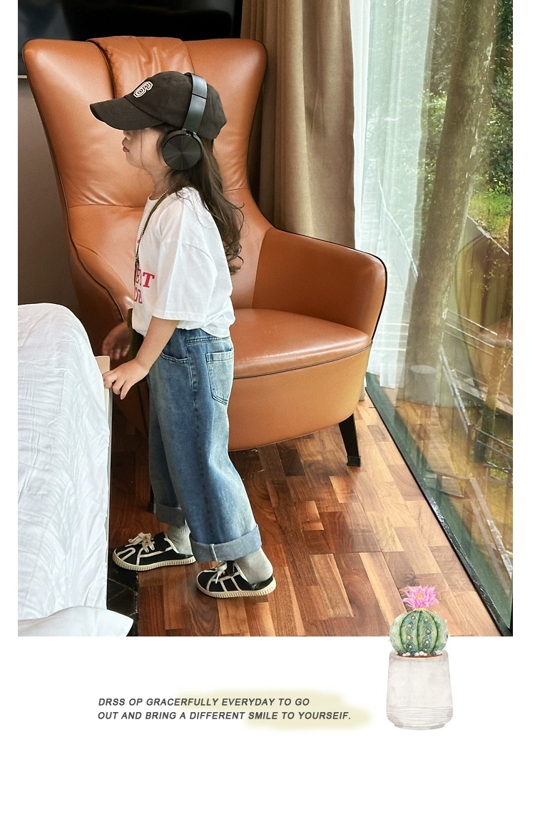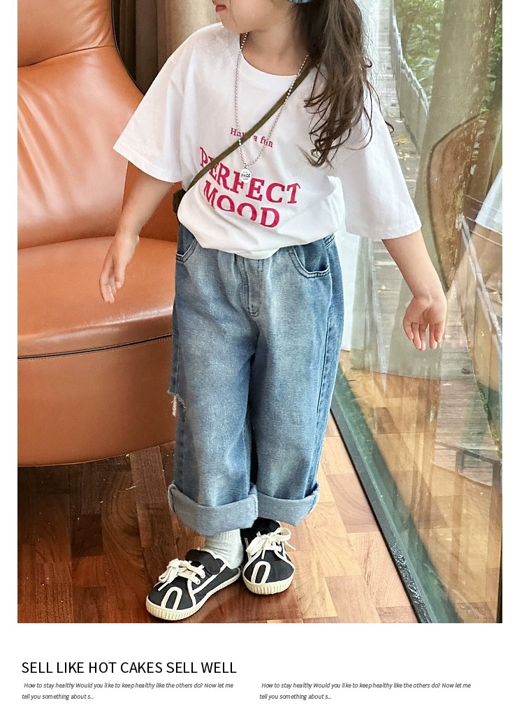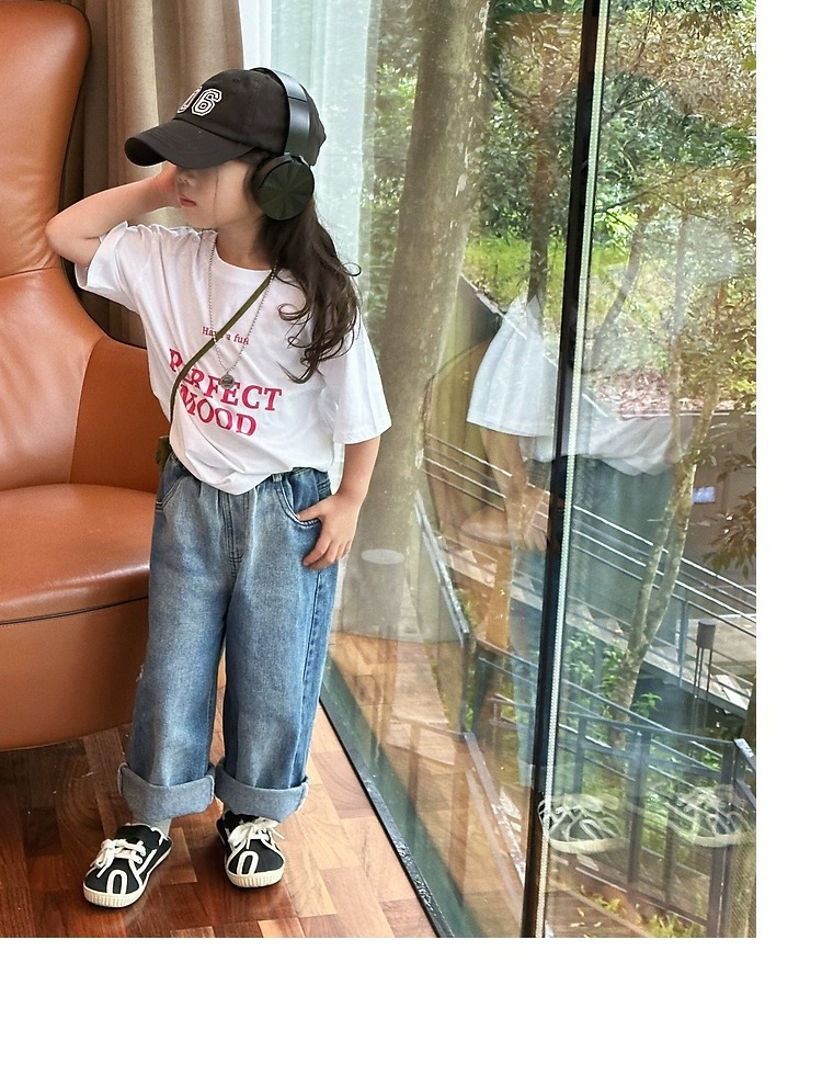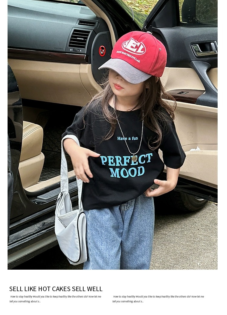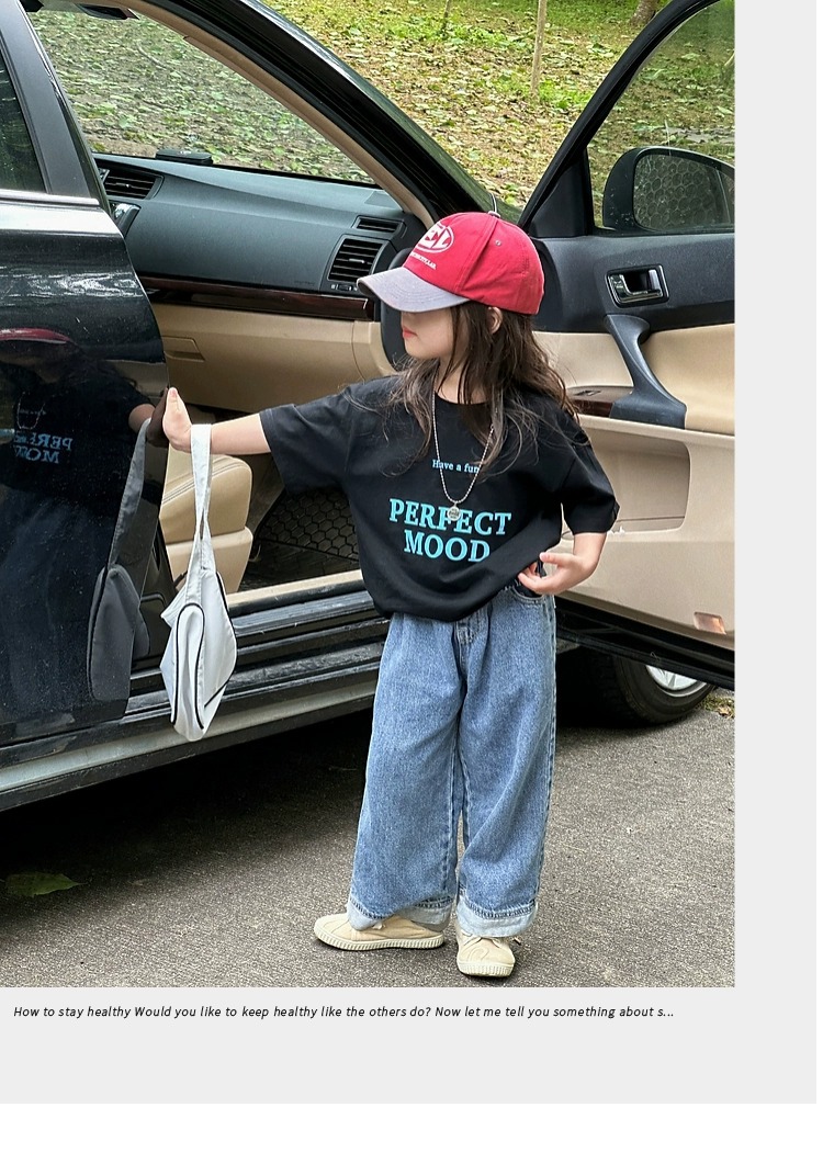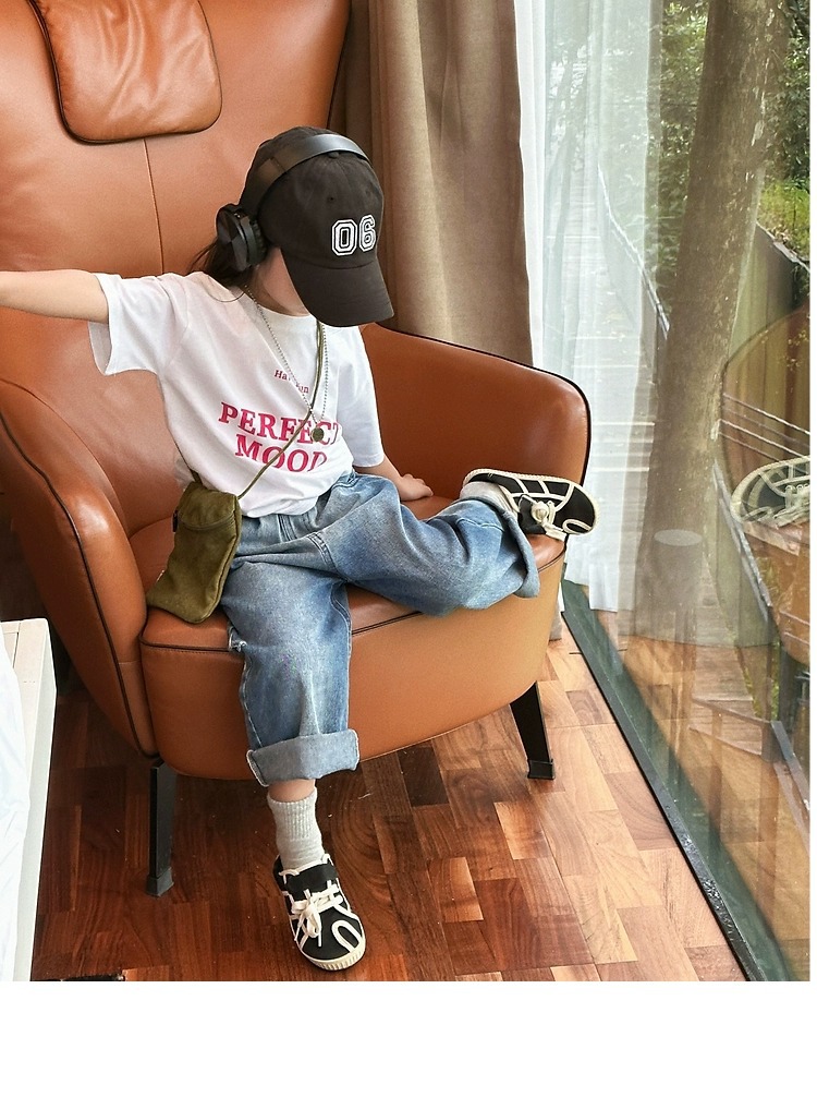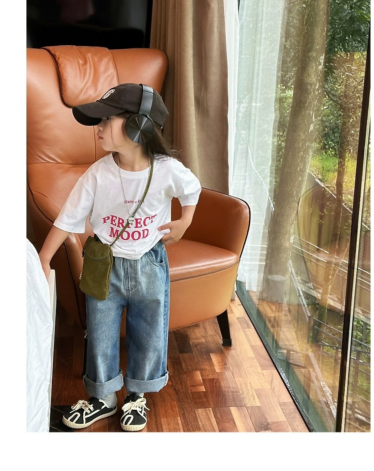 한국식 어린이 편지 반팔 2024 여름 아기 세련 된 캐주얼 탑 걸스 유행 올 매치 티셔츠 루즈