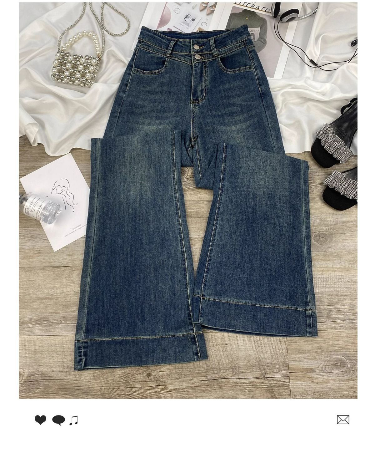 여성용 레트로 하이 스트리트 마이크로 플레어 청바지, 미국 트렌드, 다재다능한 새로운 스타일, 하이 웨이스트, 슬리밍, 신축성 있는 더블 버튼 말굽 바지스토어 가기
