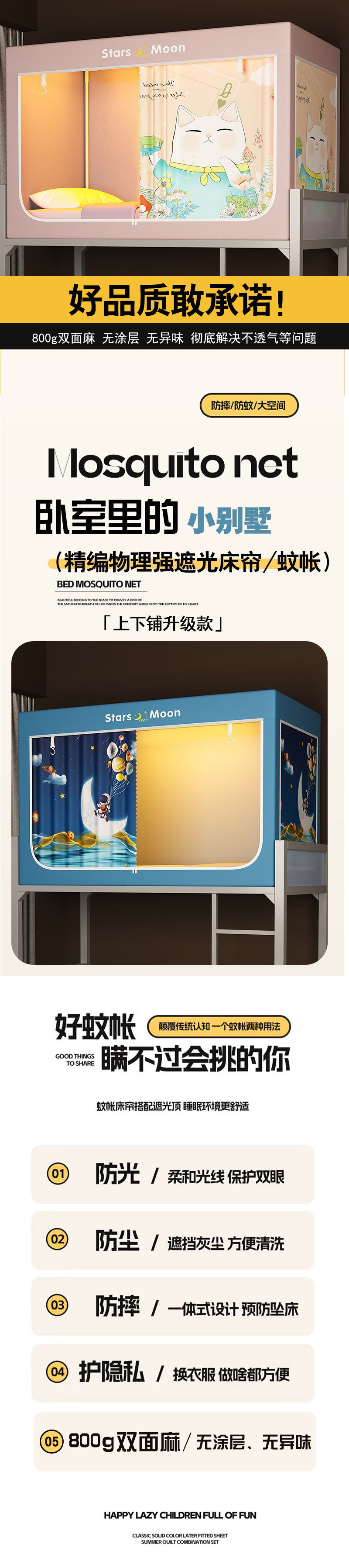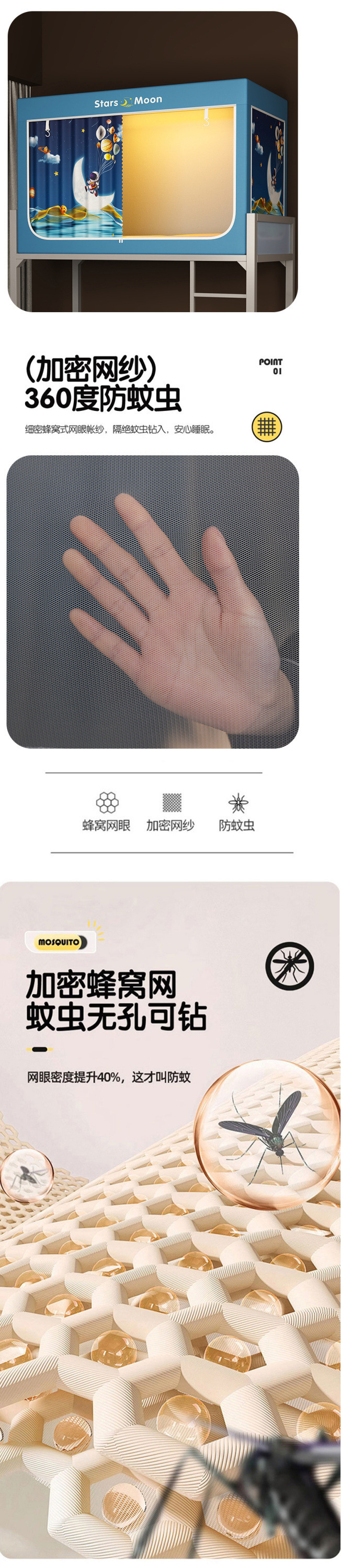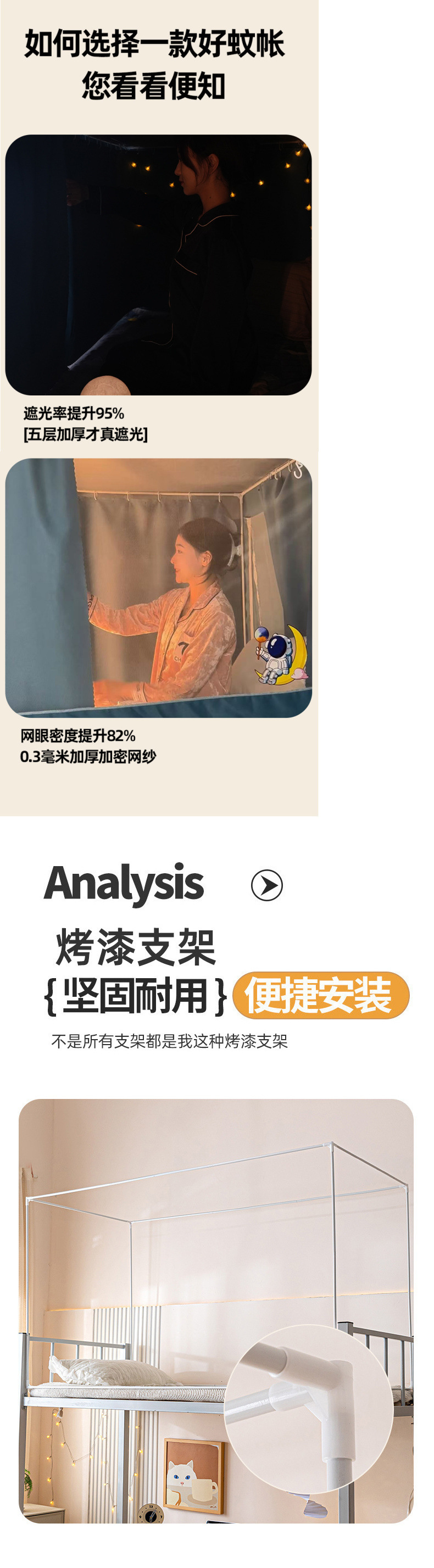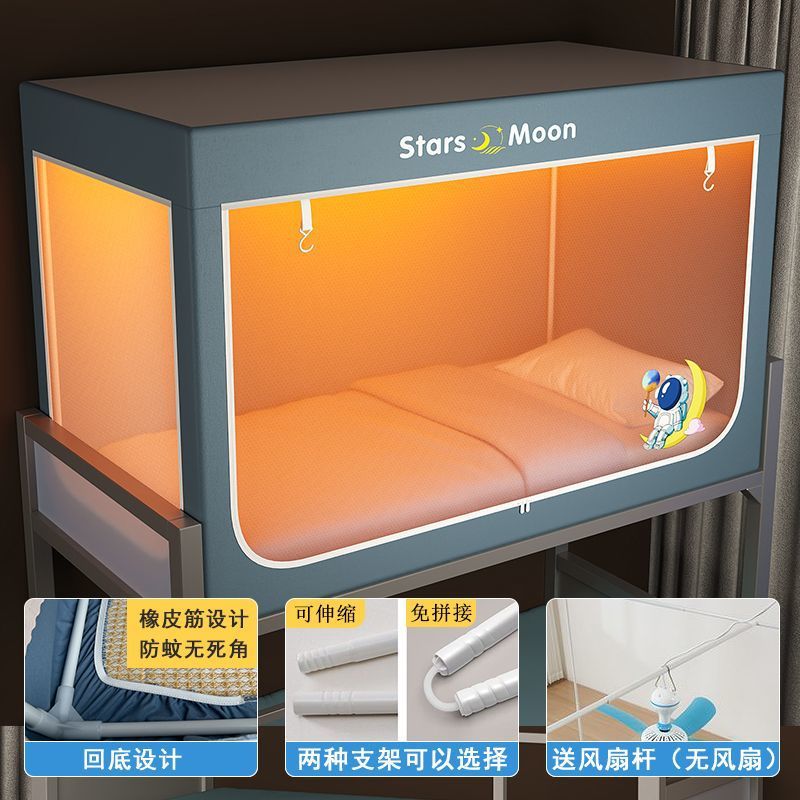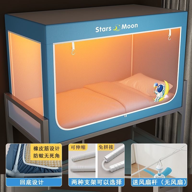대학생 기숙사 전용 암막 침대 커튼과 모기장 일체형 완전 밀폐형 싱글 이층 침대(스탠드 포함)