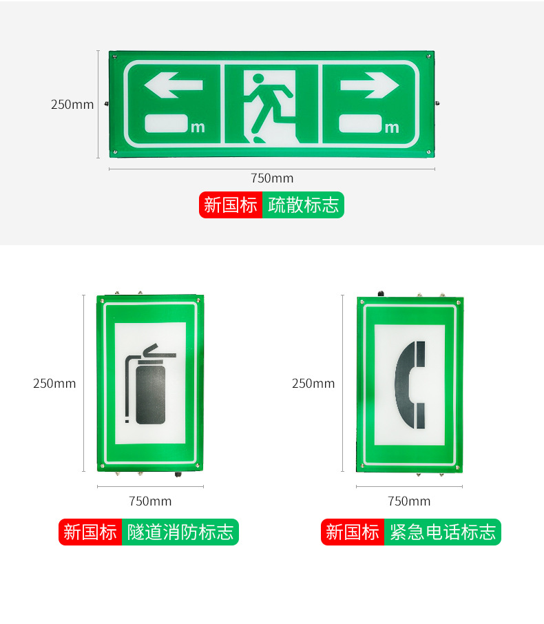터널 전기 광학 표지판 표시기 새로운 국가 표준 고속도로 화재 안전 비상 대피 led 비상 표시등