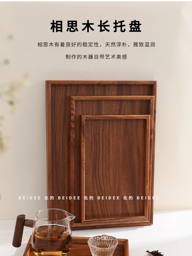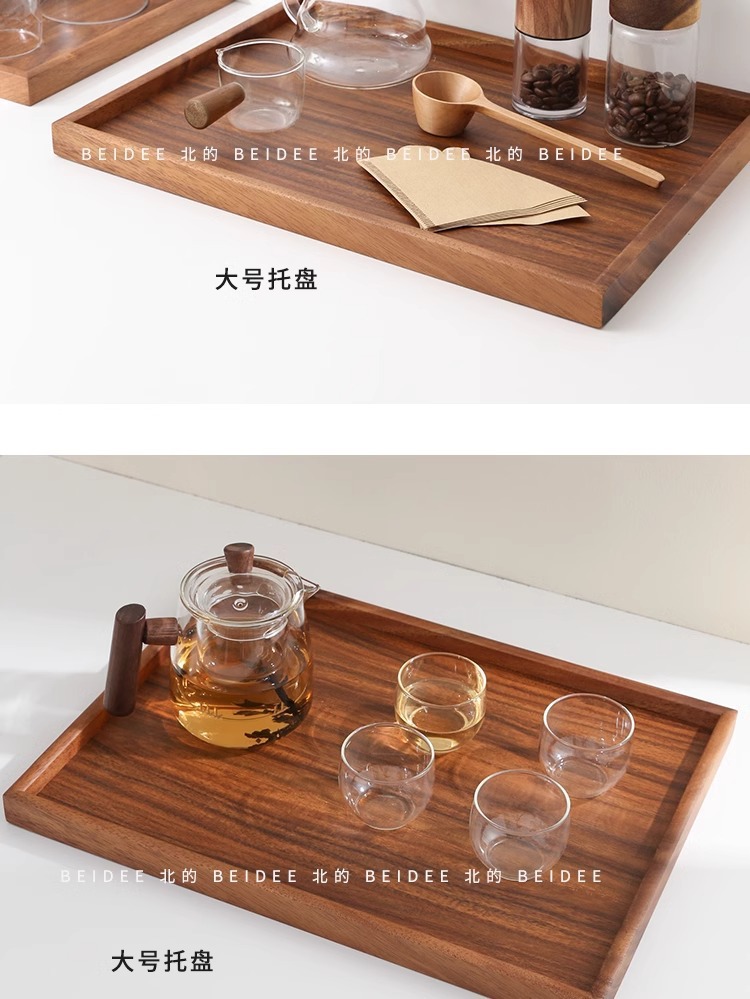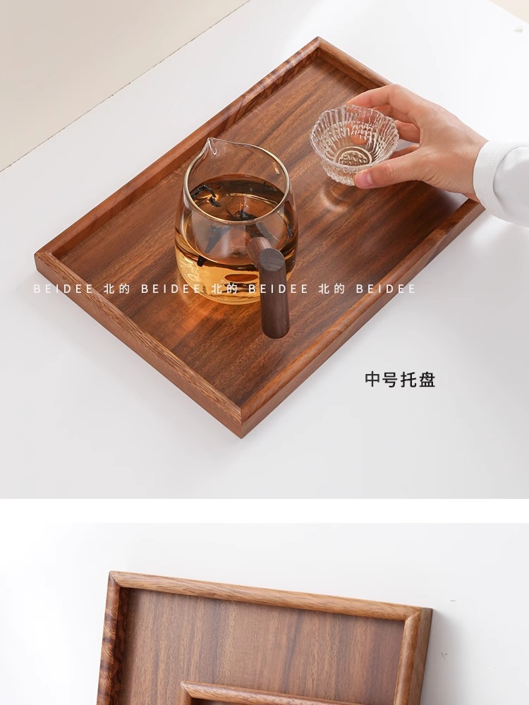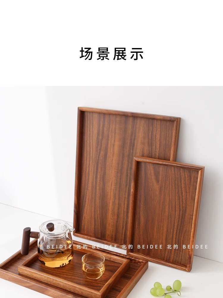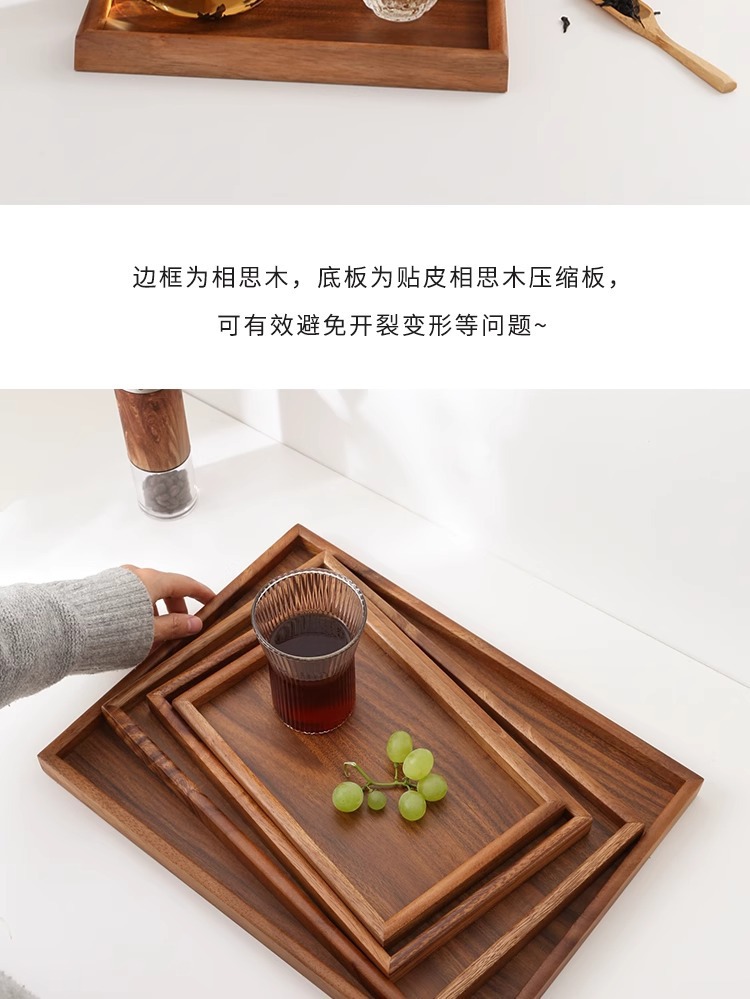 디저트 트레이 호두 트레이 직사각형 나무 커피 컵 트레이 케이크 하이 엔드 라이트 럭셔리 단단한 나무 차 트레이