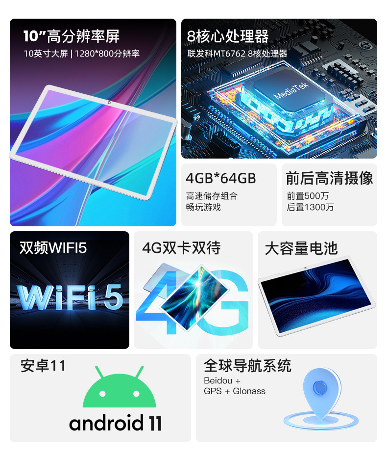 10卓平板电脑八核4G可插卡通话wifi学习娱乐办公电脑
