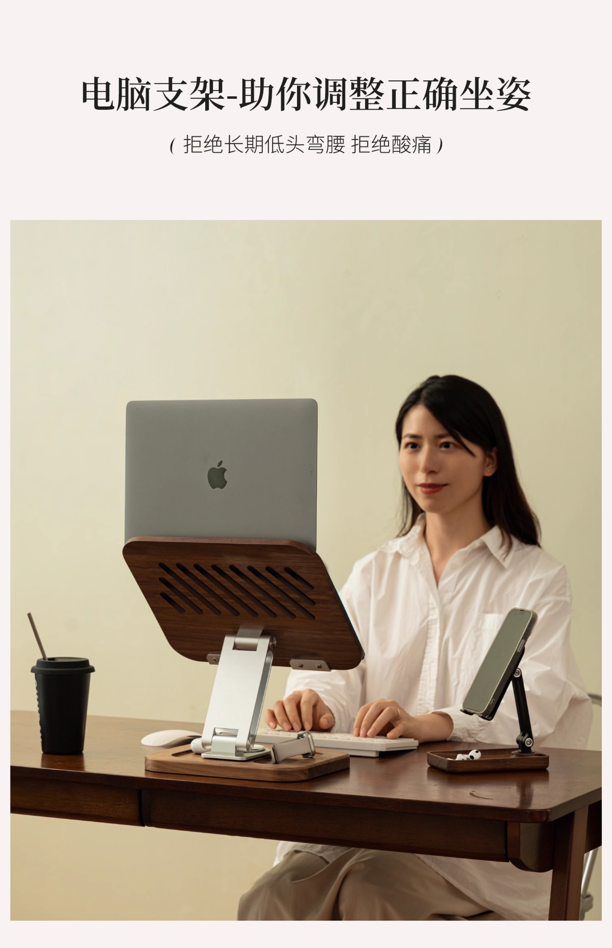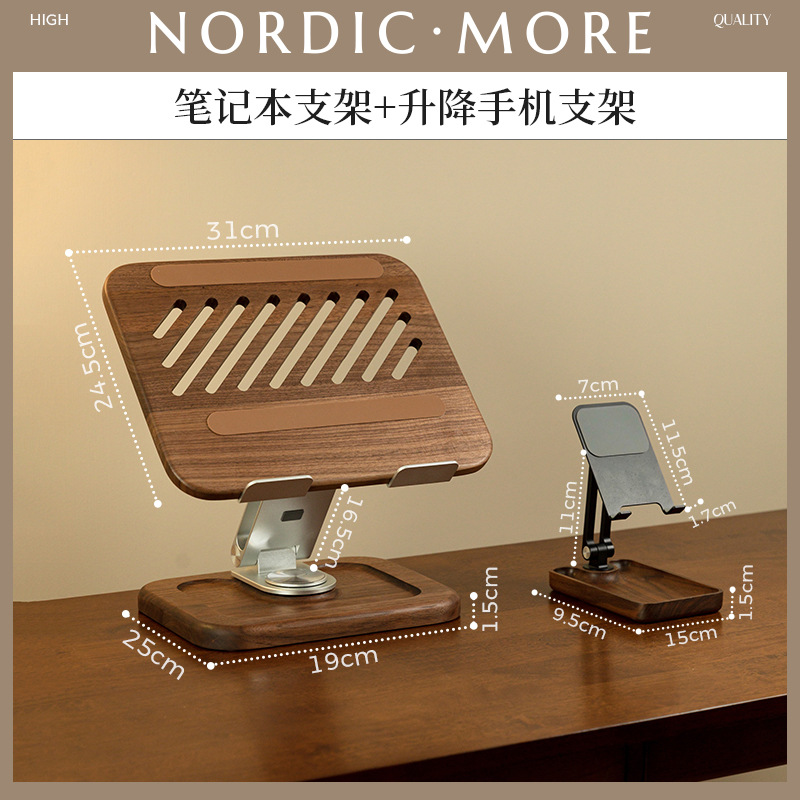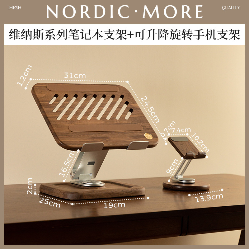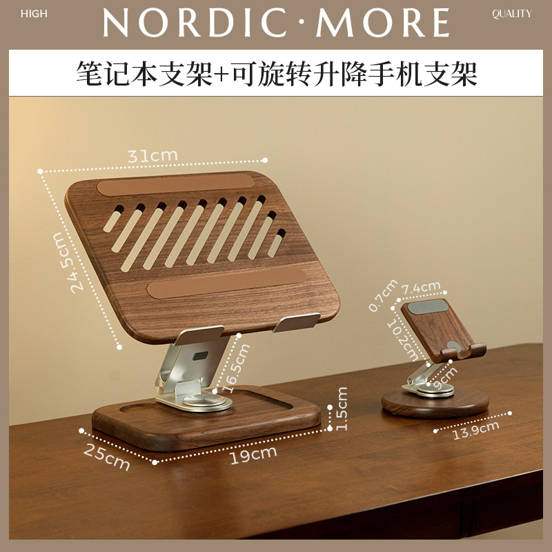 • [콤비네이션 세트] 북미 FAS 등급 블랙 월넛 [노트북 스탠드 + 회전식 리프팅 휴대폰 홀더]