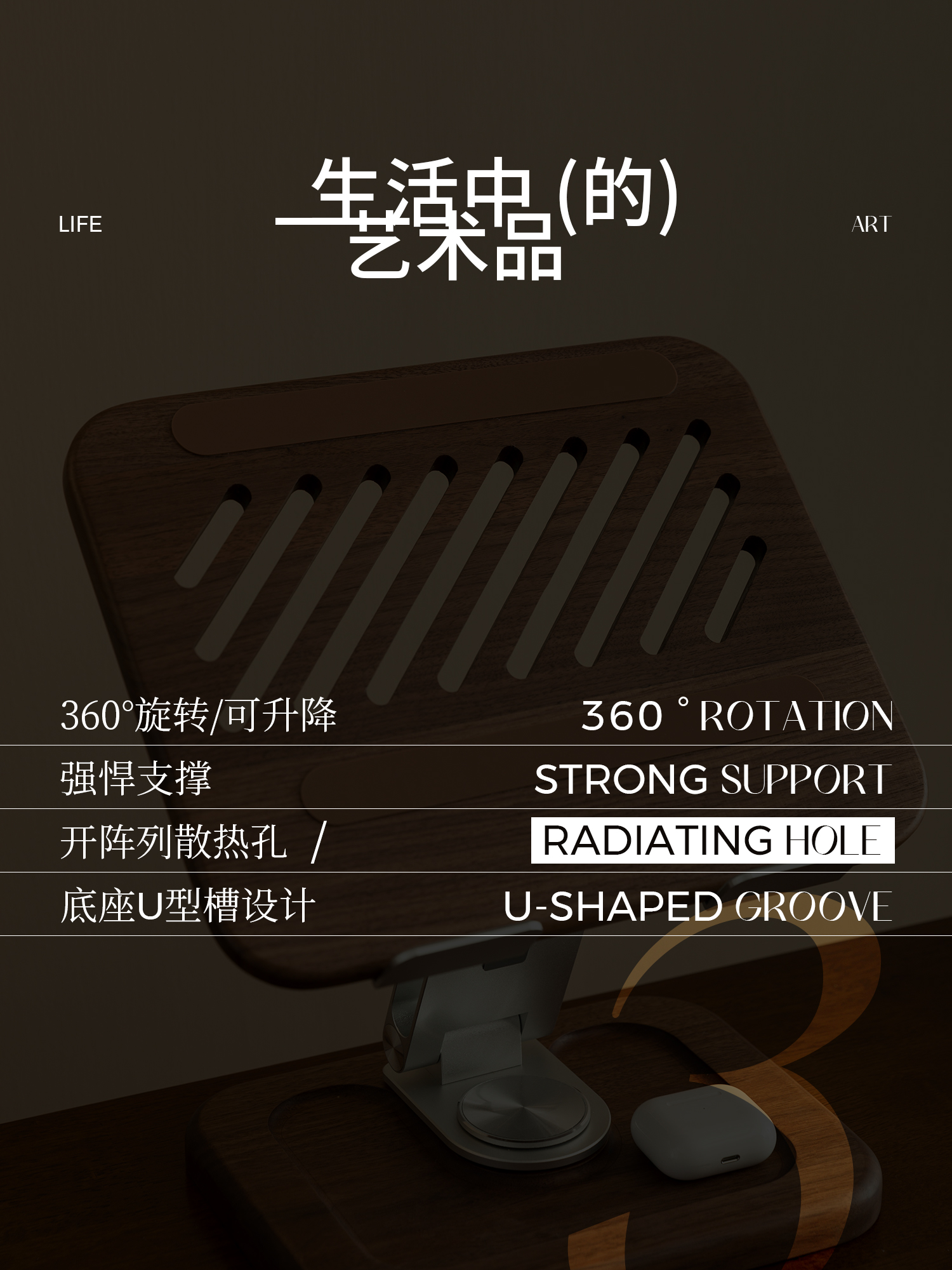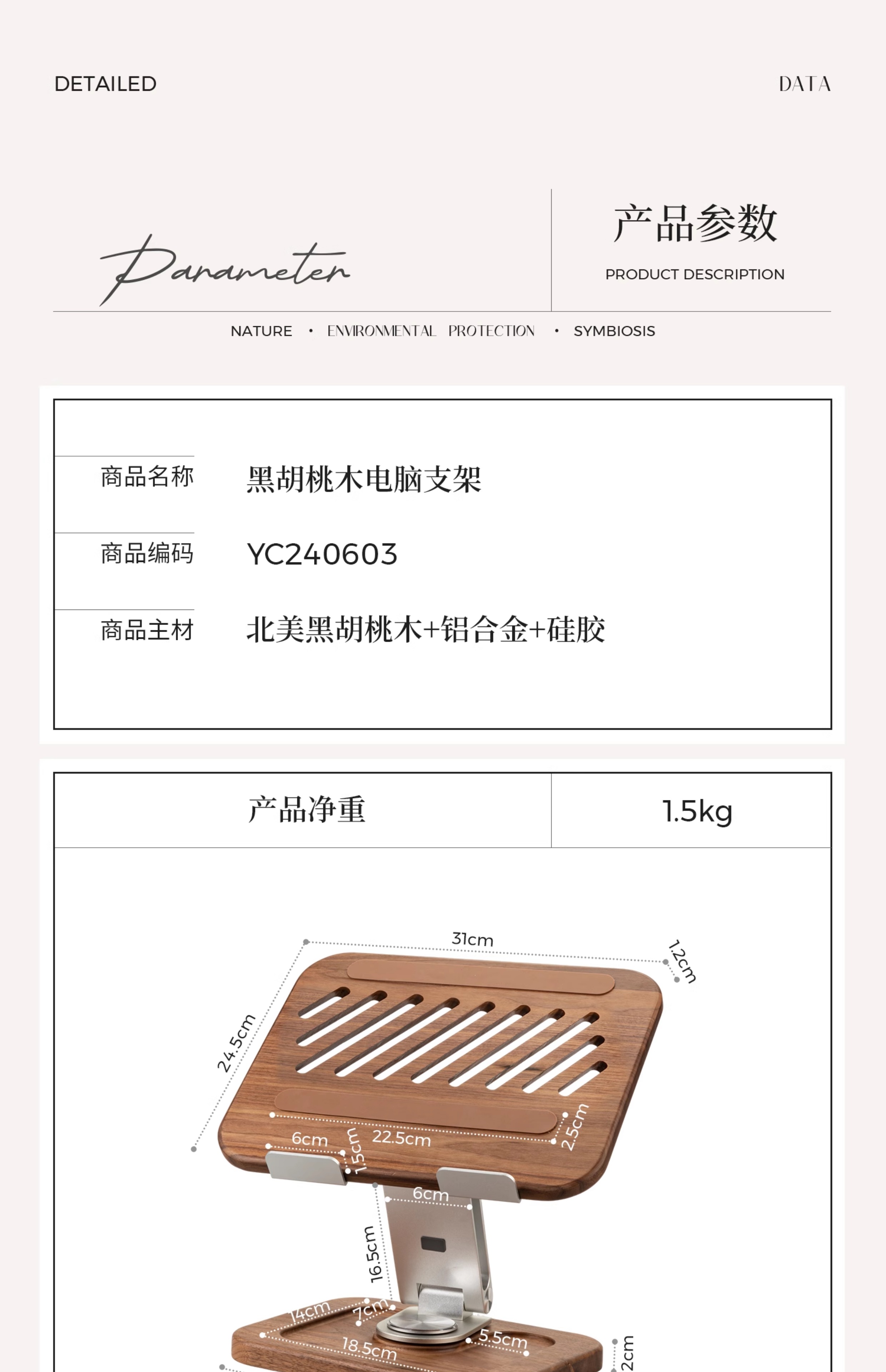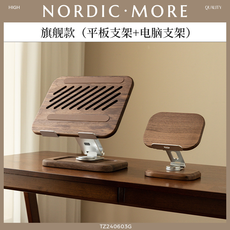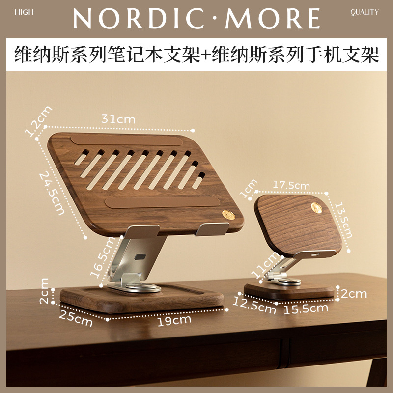• [콤비네이션 세트] 북미 FAS 등급 블랙 월넛 [노트북 스탠드 + 회전식 리프팅 휴대폰 홀더]