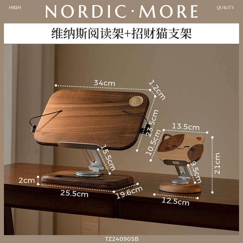 • [콤비네이션 세트] 비너스 블랙 월넛 독서대 + 럭키캣 스탠드