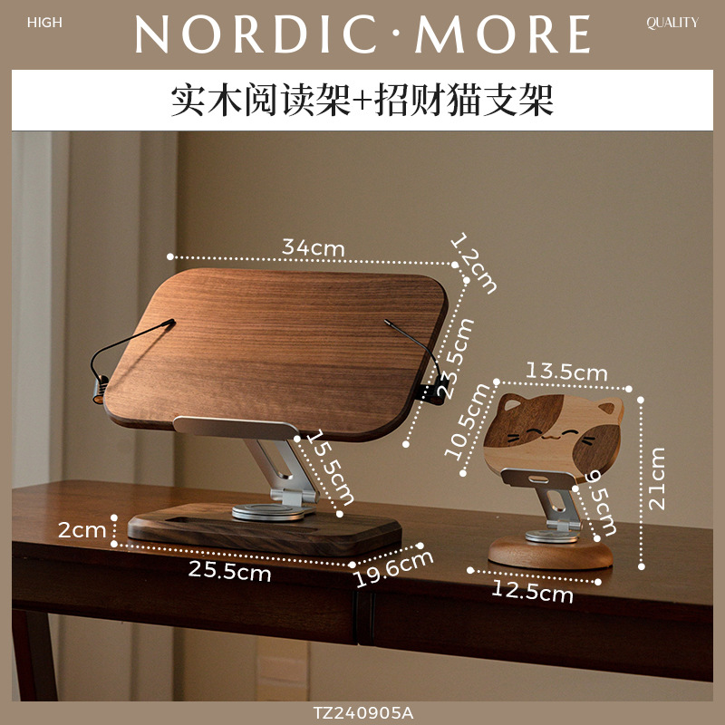 • [콤비네이션 세트] FAS 등급 블랙 월넛 독서대 + 럭키캣 스탠드