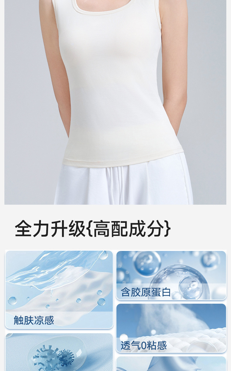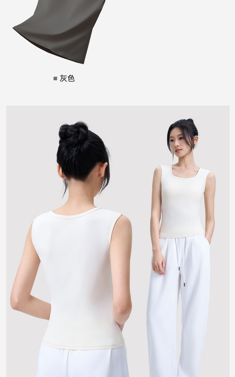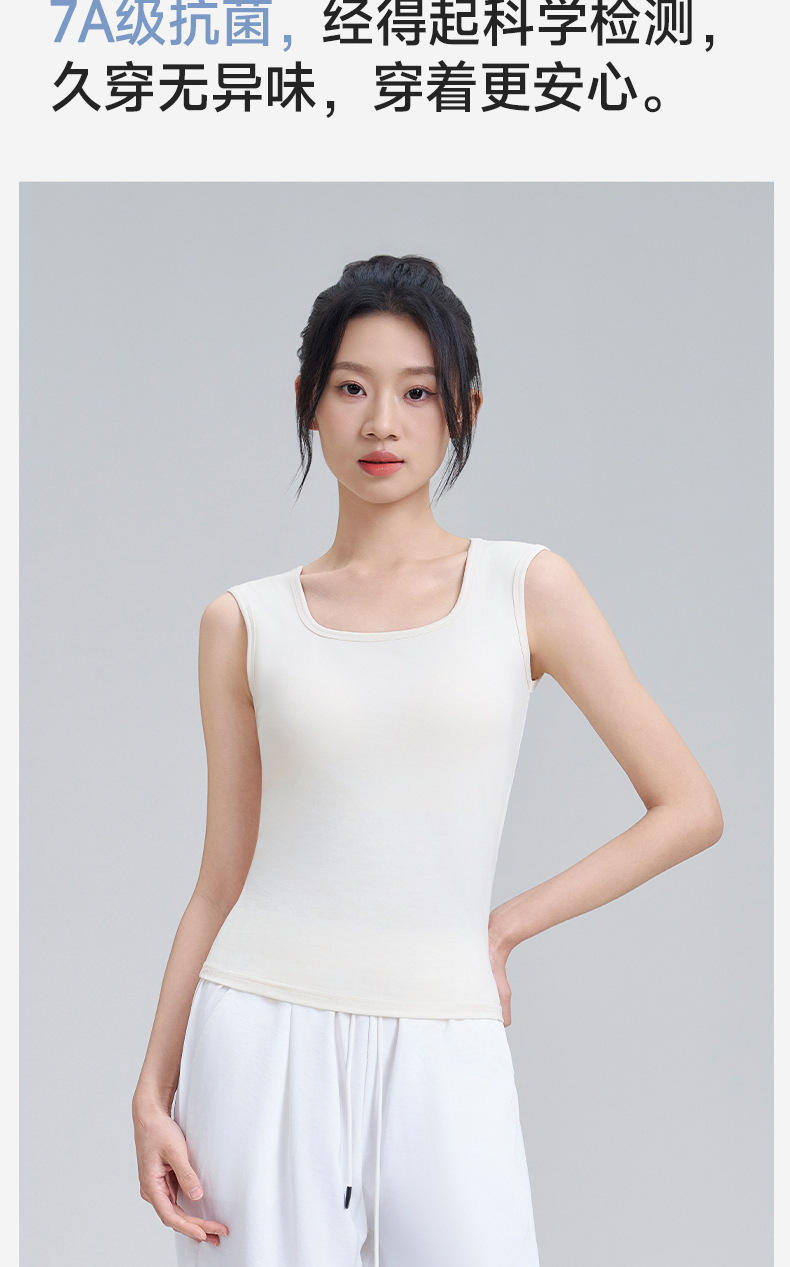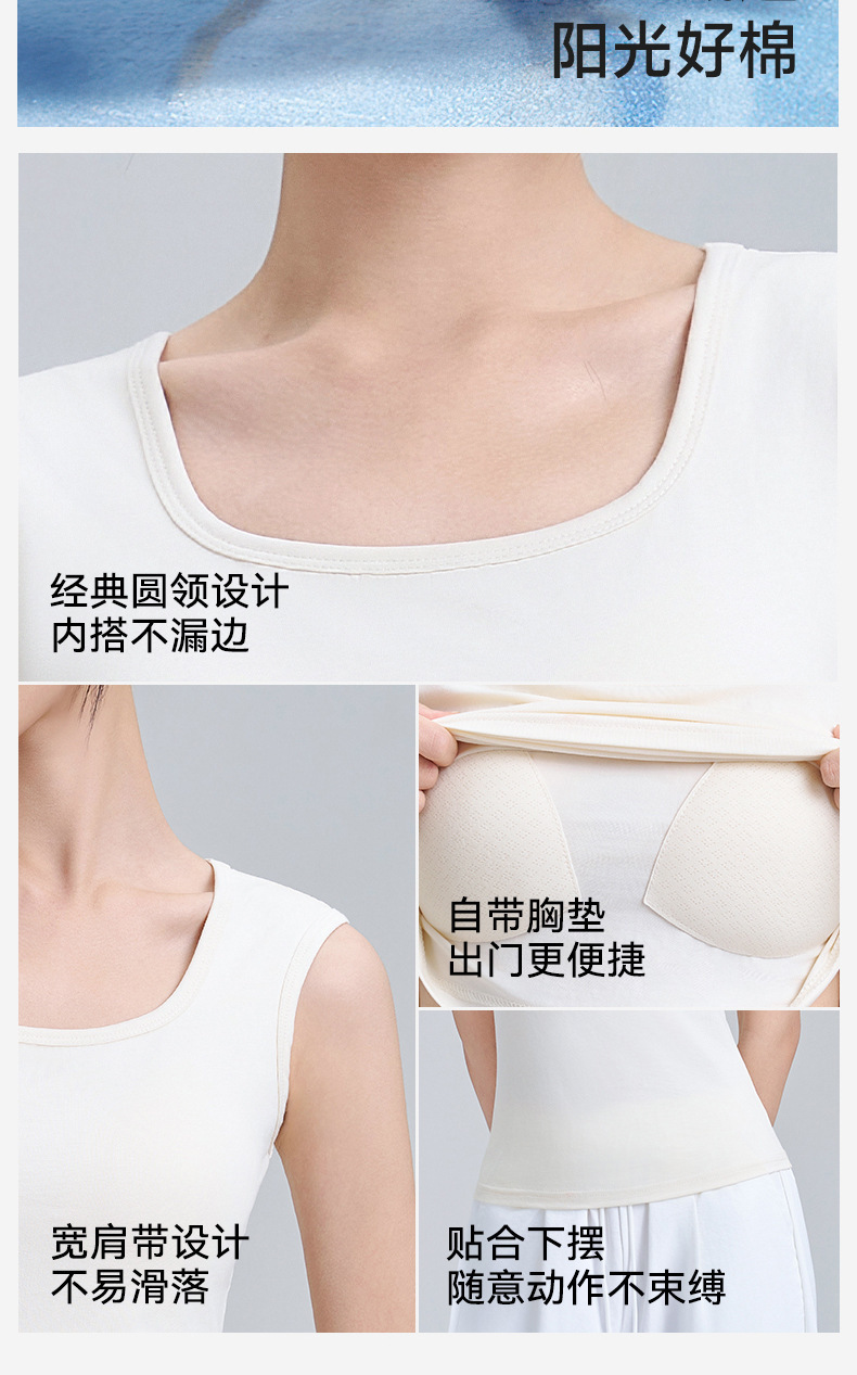 퓨어 코튼 조끼 여성 벨트 가슴 패드 내베이스 슬링 2025 새로운 스퀘어 칼라 민소매 외부 착용 쿨 탑 봄과 여름스토어 가기