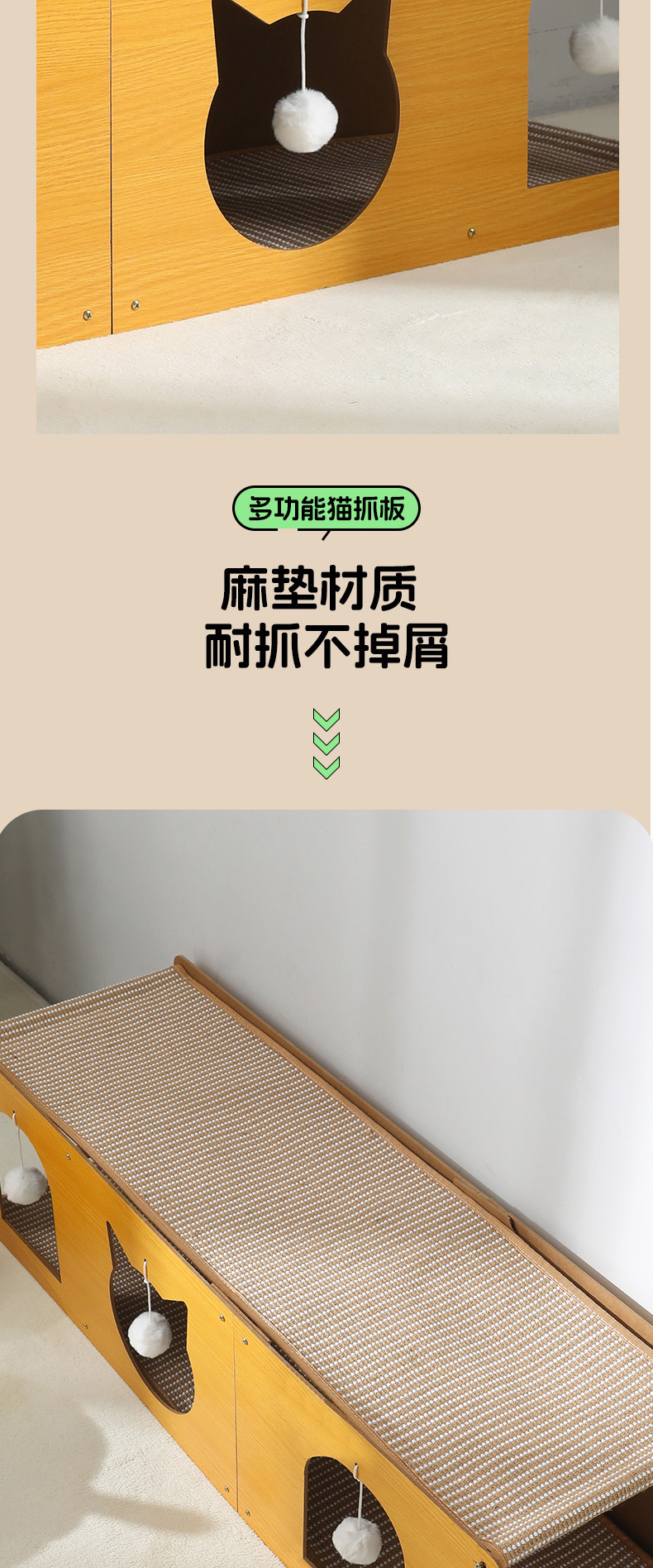 고양이 터널과 고양이 둥지가 하나로 통합되어 있고 대형 사자수 고양이 스크래치 패드는 긁힘 방지, 내마모성 및 부스러기 방지 기능이 있으며 사계절 내내 사용할 수 있는 보편적인 애완동물 제품입니다.