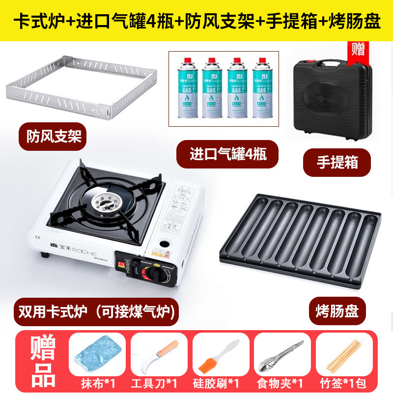 • 기름통이 있는 두꺼운 소시지 팬 + 검정색 이중 목적 스토브 + 선물 + 가스 4캔