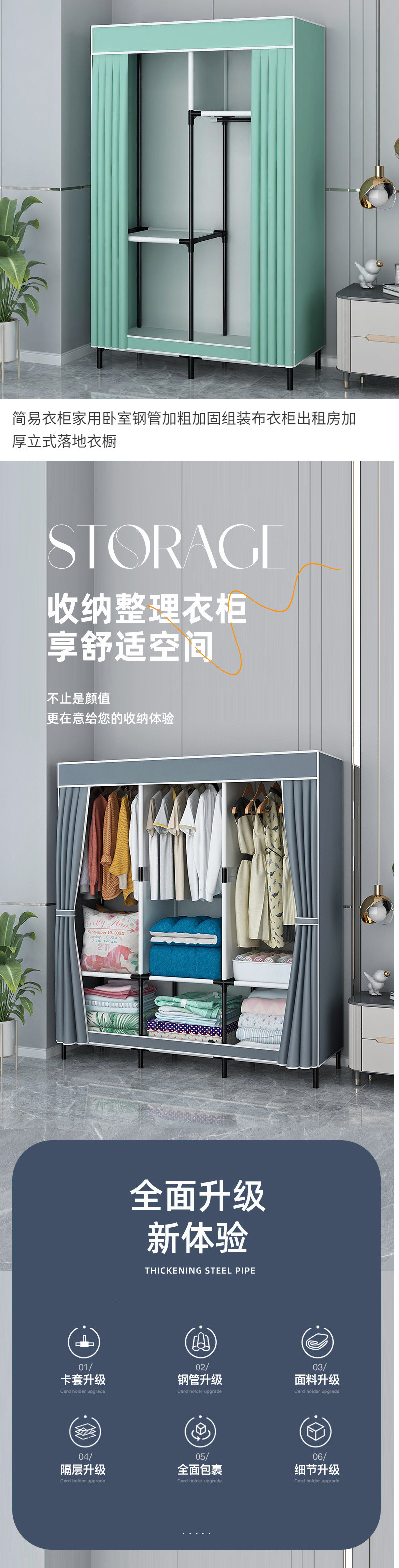 가정용 침실용 간이 옷장 두꺼운 천 옷장 임대실 두꺼운 수직 바닥 간단한 빛 럭셔리 새로운 스타일 2025스토어 가기