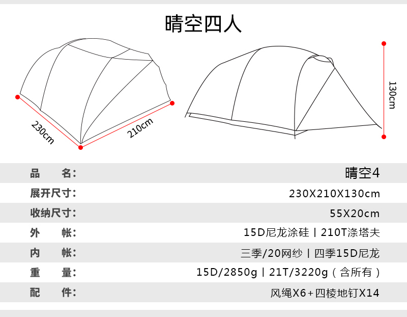Sanfeng Outdoor Clear Sky 3인용 텐트 크로스보더 3인용 3계절 4인용 방수 및 방풍 초경량 캠핑스토어 가기