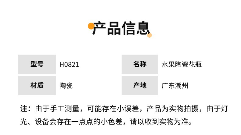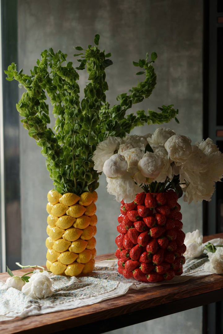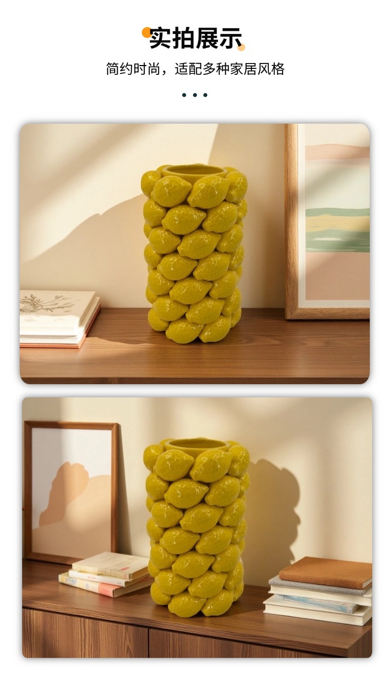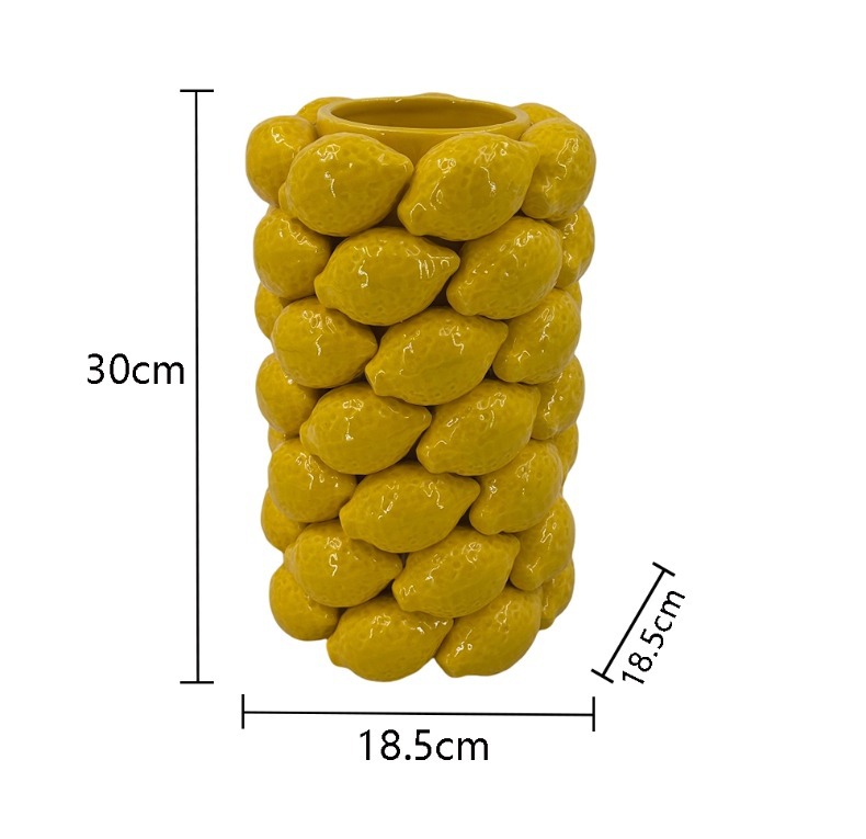차오 저우 창조적 인 시뮬레이션 레몬 세라믹 과일 꽃병 북유럽 스타일 장식품 꽃 배열 높은 수준의 수공예품스토어 가기
