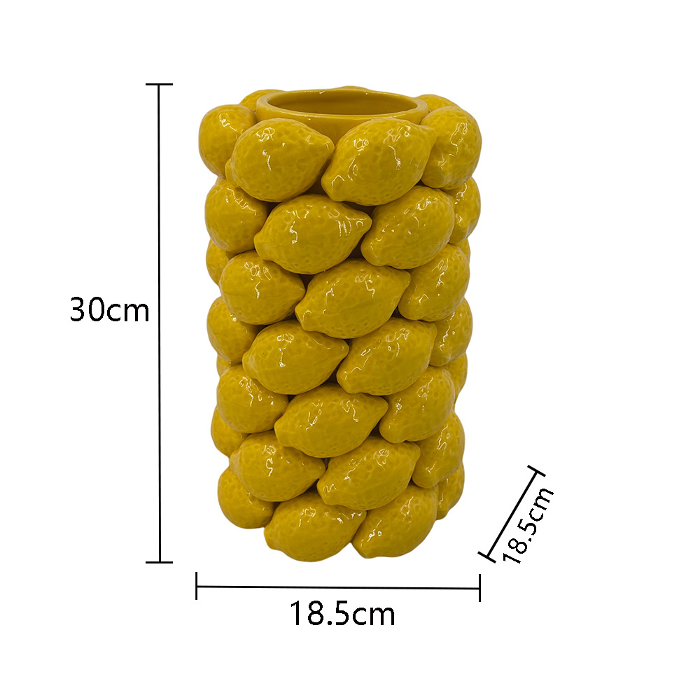 차오 저우 창조적 인 시뮬레이션 레몬 세라믹 과일 꽃병 북유럽 스타일 장식품 꽃 배열 높은 수준의 수공예품