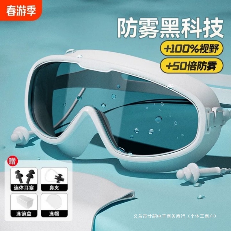 대형 프레임 수영 고글 HD 다이빙 방수 및 안개 방지 전문 남성 및 여성 수영 고글 어린이 다이빙 수영 모자 세트 장비스토어 가기