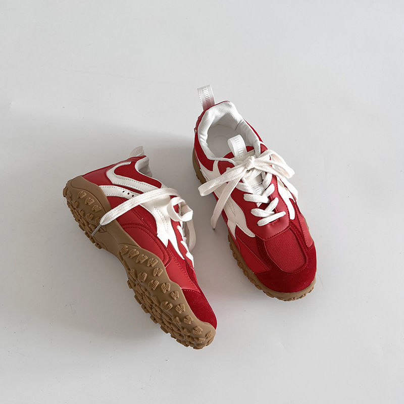 미국 레드 패션 레트로 레트로 높이 증가 독일 트레이닝 슈즈 여성의 2025 새로운 봄 두꺼운 올 매치 포레스트 검프 운동화