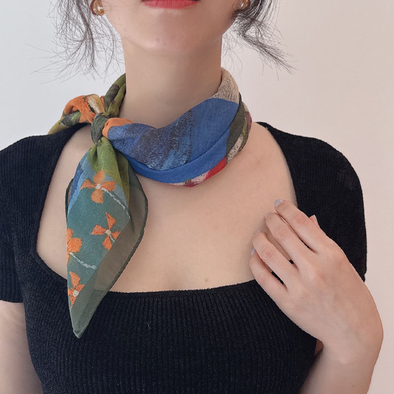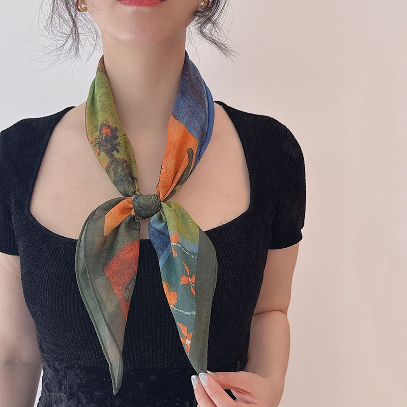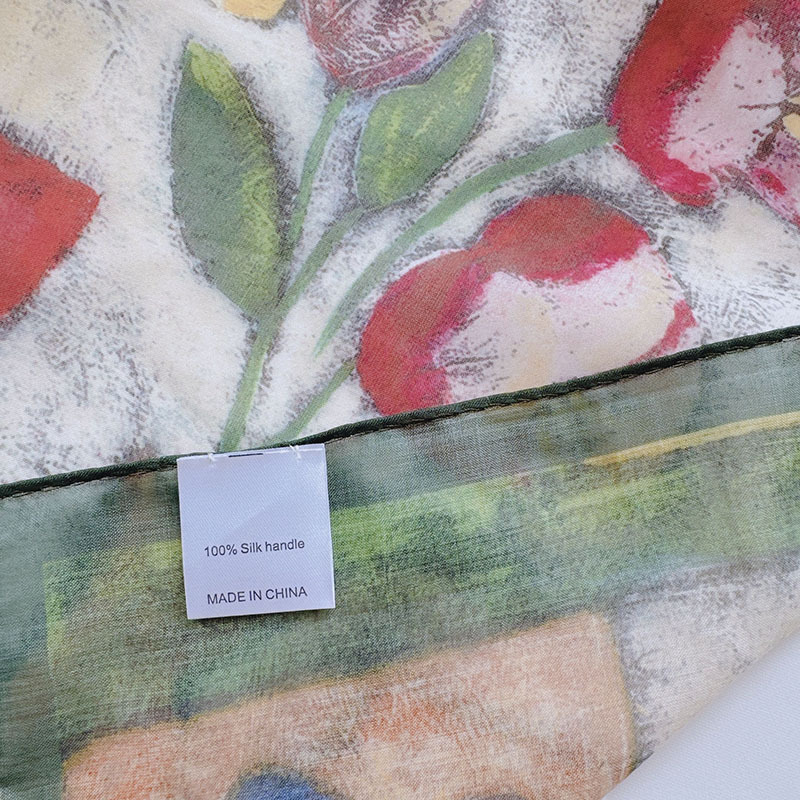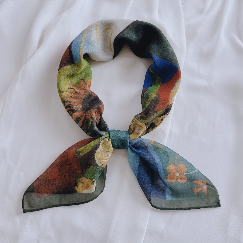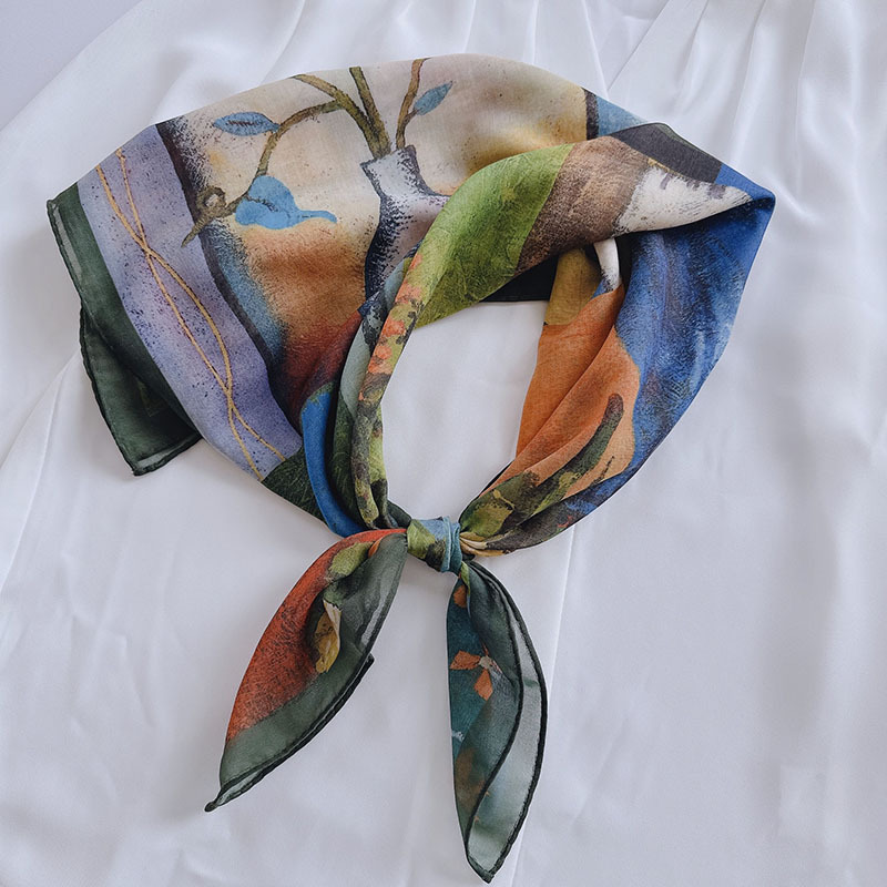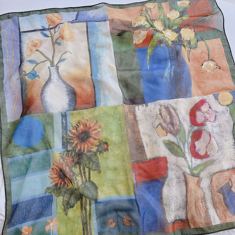 여성을 위한 매우 부드럽고 얇은 사각형 스카프, 예술적 복고풍 유화 꽃병 실크 스카프, 새로운 크로스보더 베스트셀러 스카프, 유럽 및 미국스토어 가기