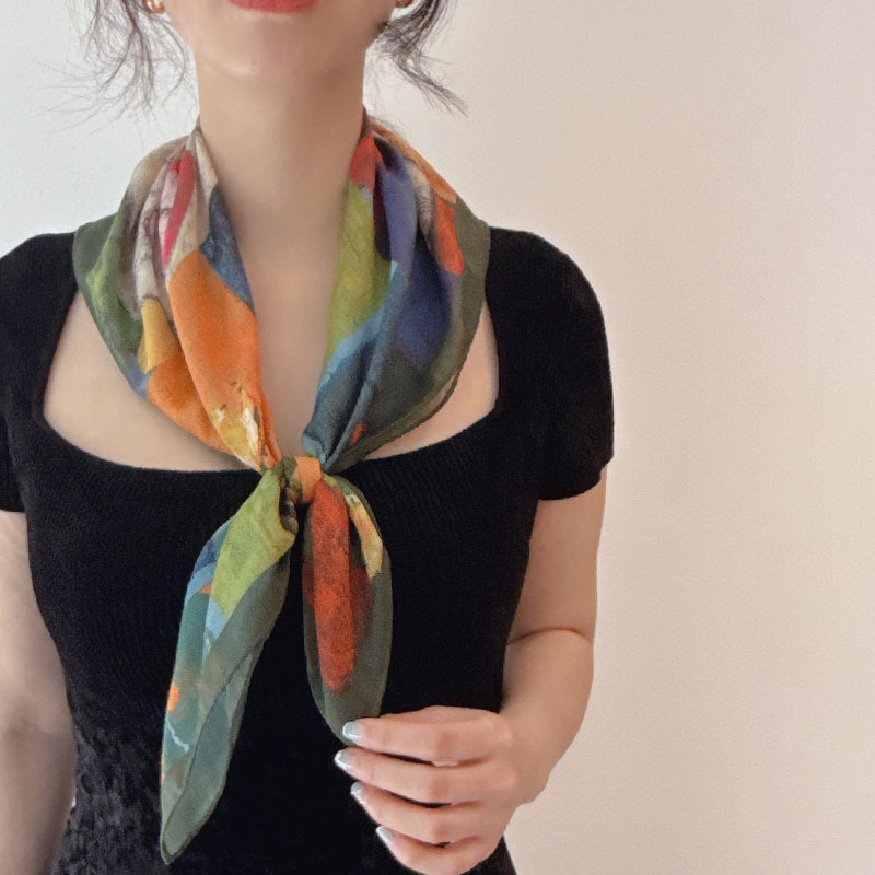 여성을 위한 매우 부드럽고 얇은 사각형 스카프, 예술적 복고풍 유화 꽃병 실크 스카프, 새로운 크로스보더 베스트셀러 스카프, 유럽 및 미국