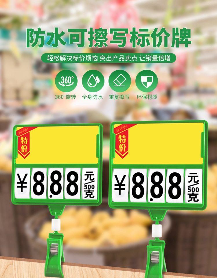 지울 수 있는 가격표 과일 가게 신선한 슈퍼마켓 가격 프로모션 스탠드 야채 가격 표시 광고 클립