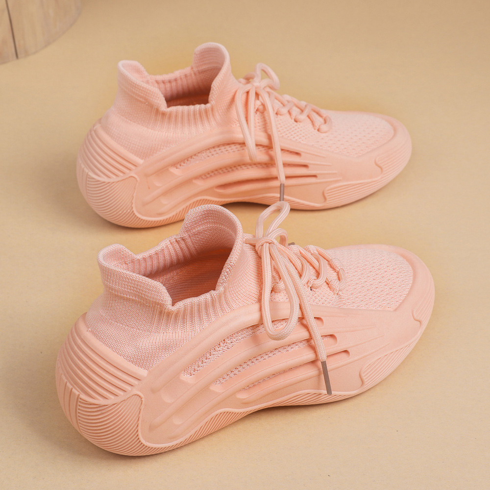2025 새로운 봄, 여름 통기성 플라이 니트 스포츠 신발 여성의 편안한 플랫 소프트 바닥 캐주얼 다목적 스트레치 양말 신발스토어 가기