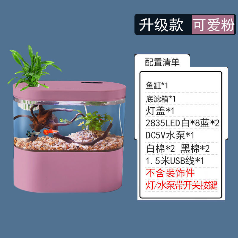 데스크탑 수조, 거실, 창의적인 소형 금붕어 수조, 사무실 일체형 바닥 필터 생태 수조, 물 교환 없음 수족관 미니 수조