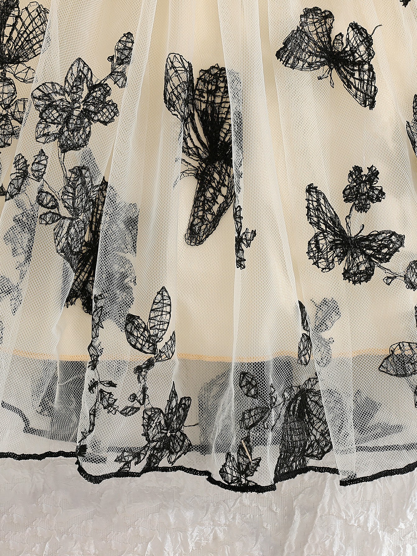 국경 간 아마존 아동복 소녀 핏 스트립 자수 꽃 메쉬 드레스 (벨트 포함)스토어 가기