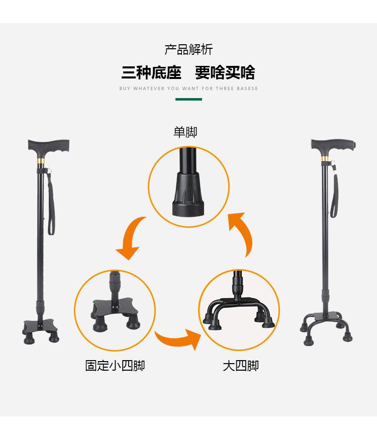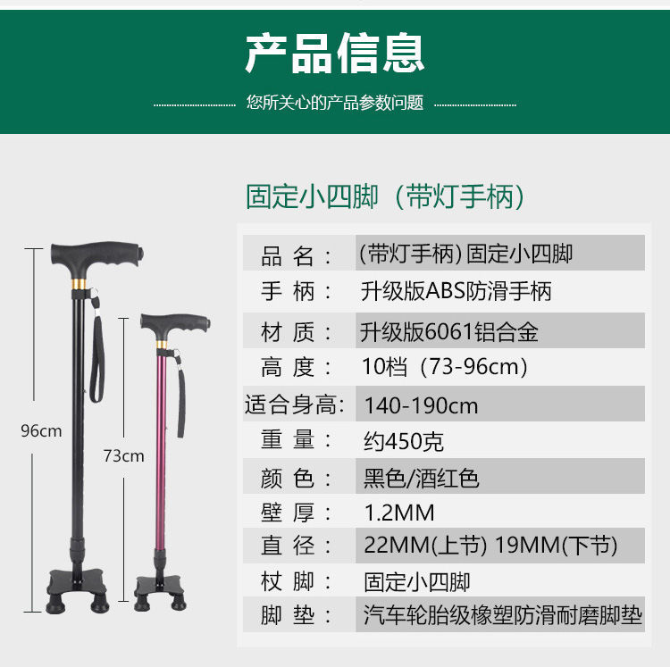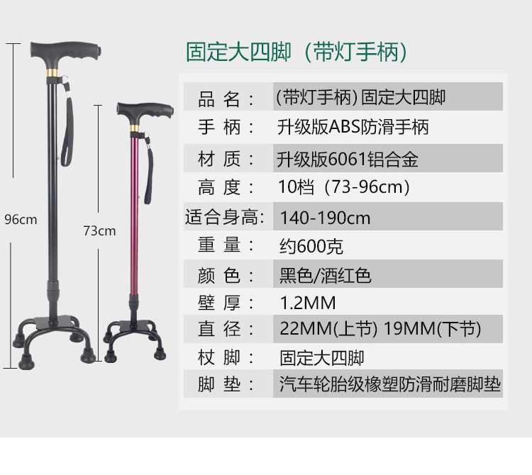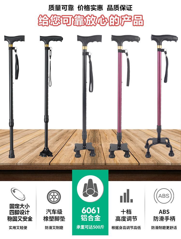 노인용 지팡이, 4각식 텔레스코픽 지팡이, 접이식 4각 지팡이, 노인용 보행 보조기, 조명 및 미끄럼 방지 기능 포함
