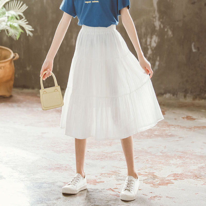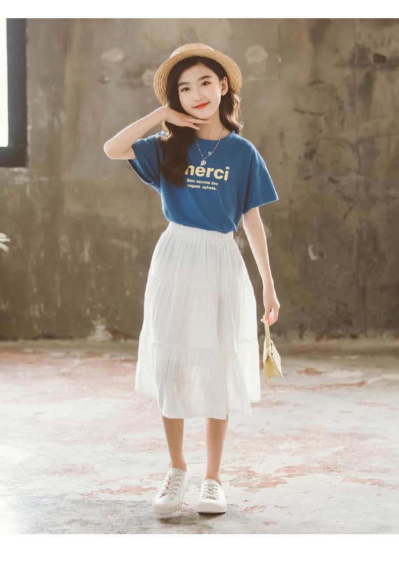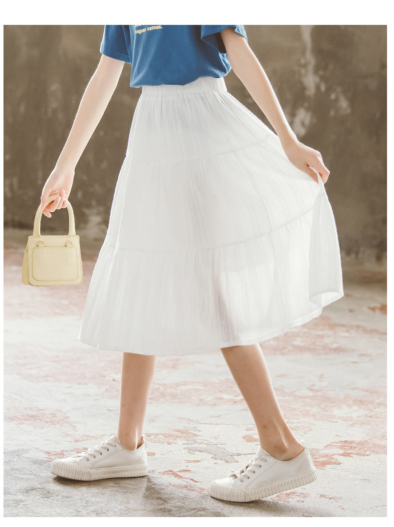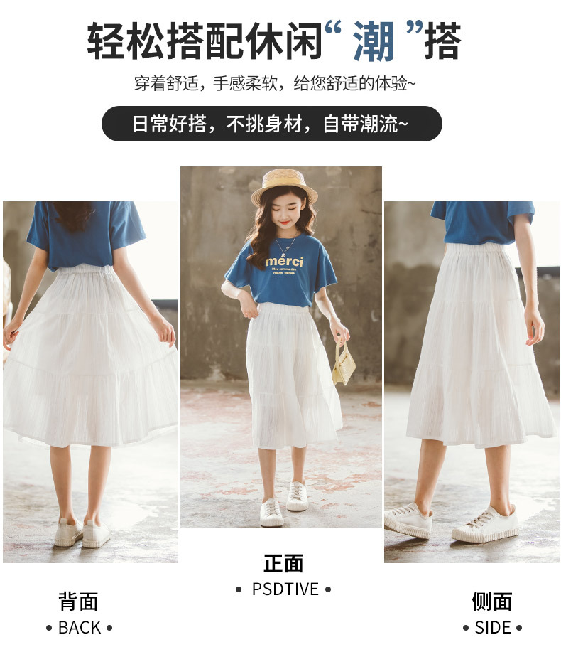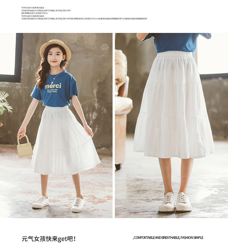 소녀의 자카드 화이트 스커트 2025 여름 새로운 어린이 큰 소녀의 한국 스타일 여름 원피스 공주 스커트