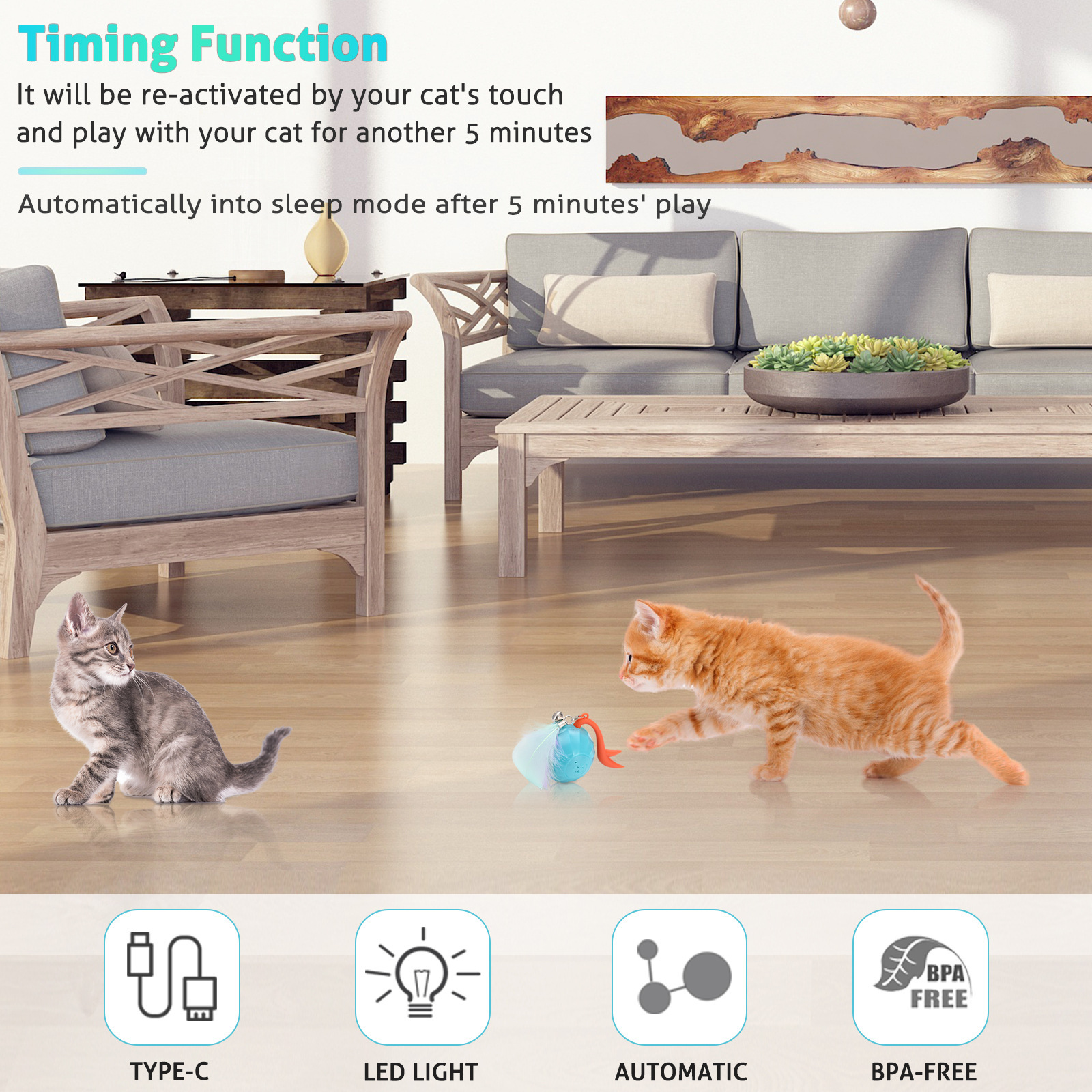스마트 고양이 장난감 Amazon 실내 조용한 전기 발광 깃털 충전식 대화형 고양이 장난감