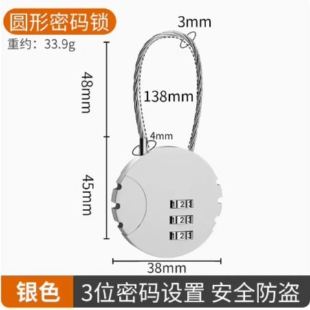 • 실버 화이트 [와이어 로프] 원형 콤비네이션 자물쇠