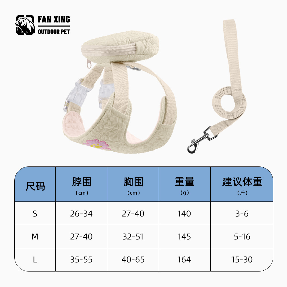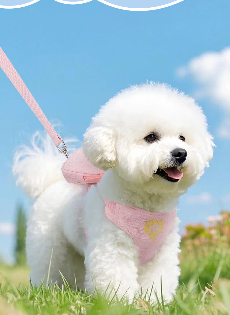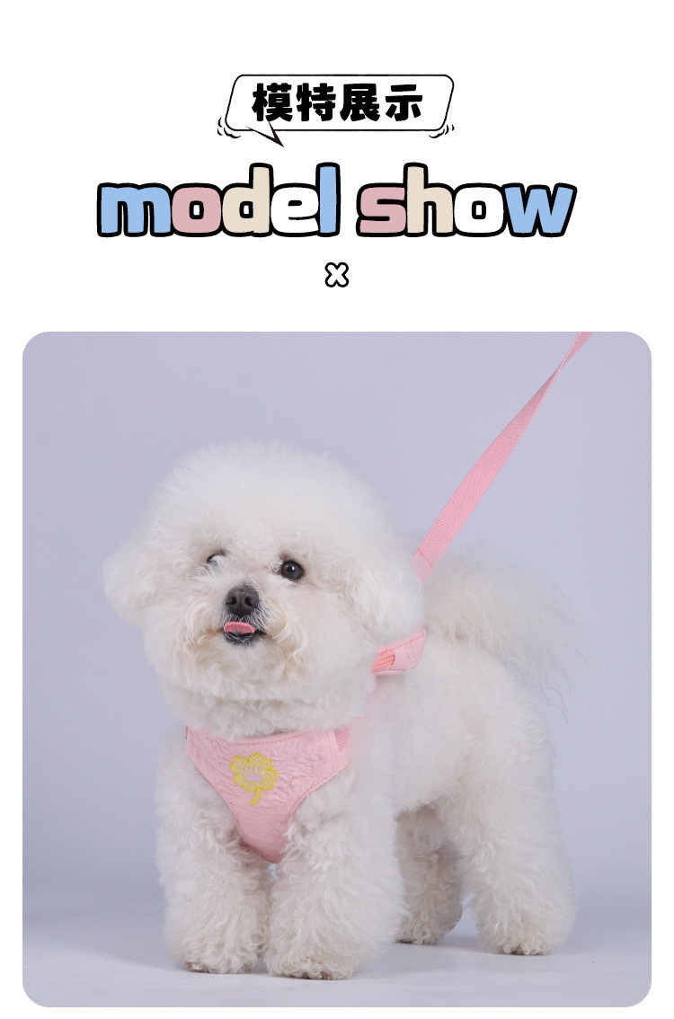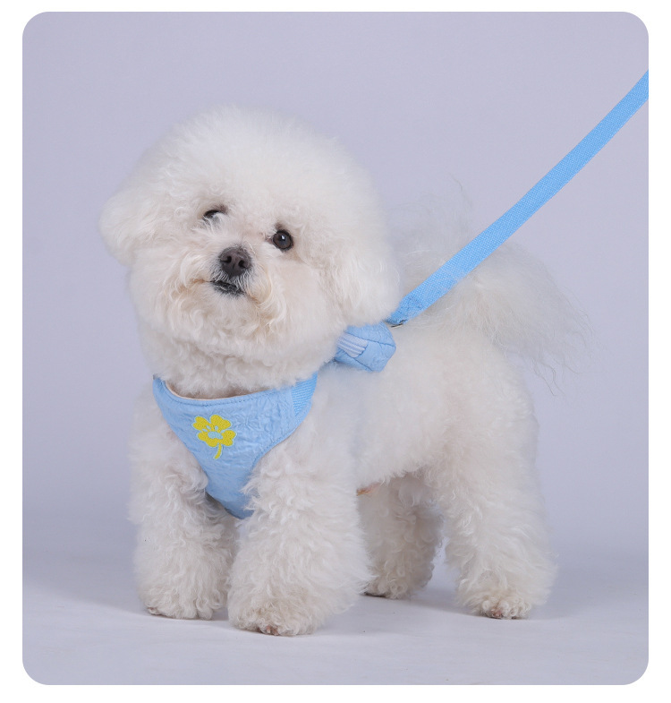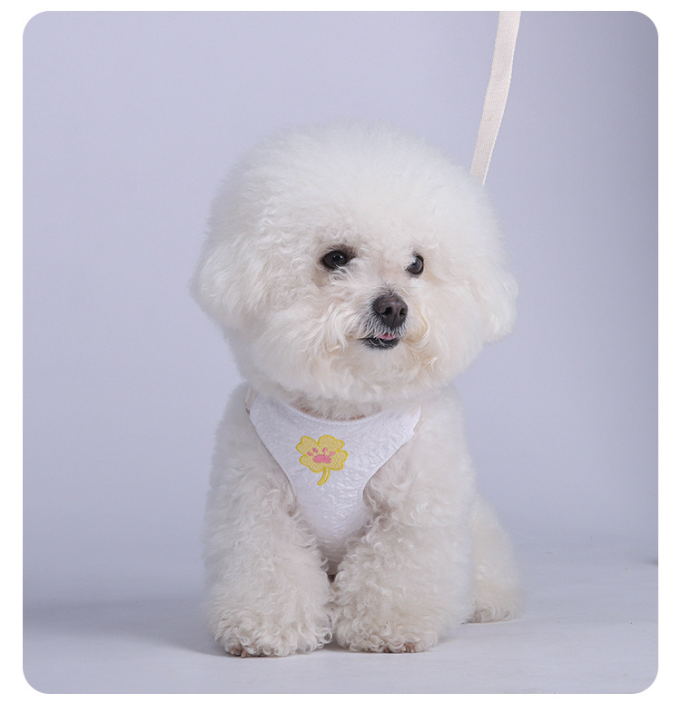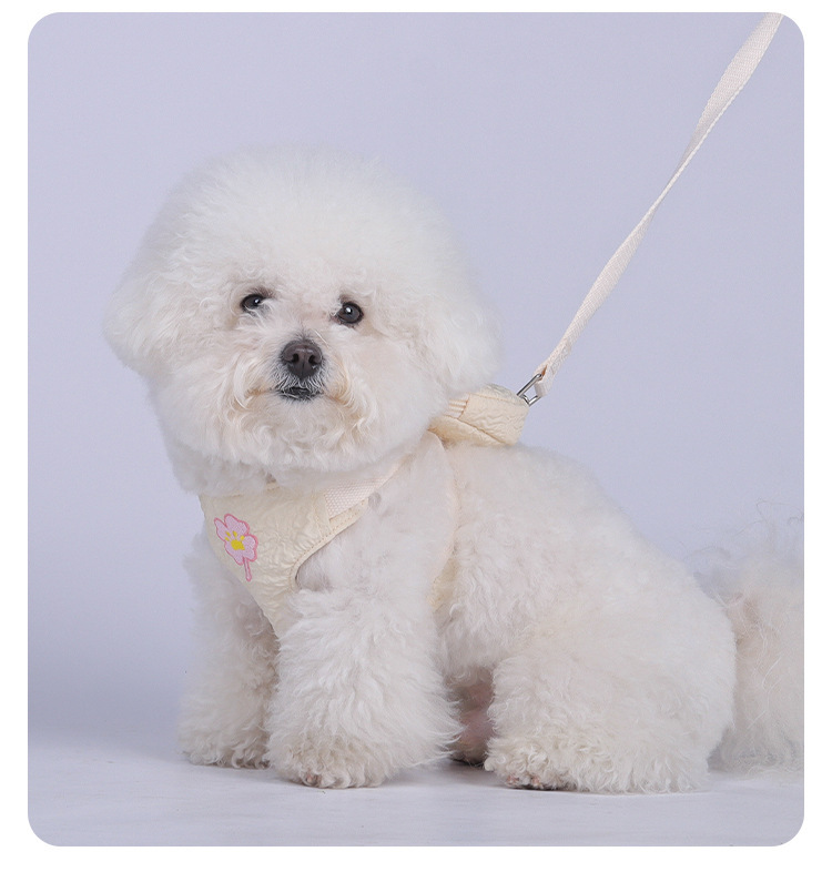 개 밖으로 신선한 꽃 수놓은 배낭 조끼 가슴 개 걷는 밧줄 고양이 밧줄 애완 동물 개 견인 밧줄
