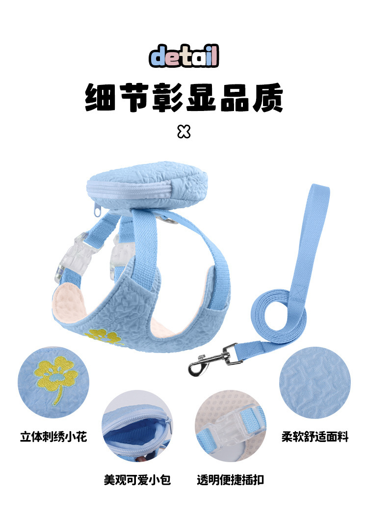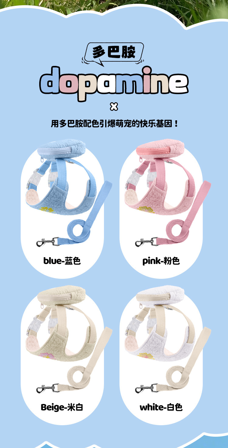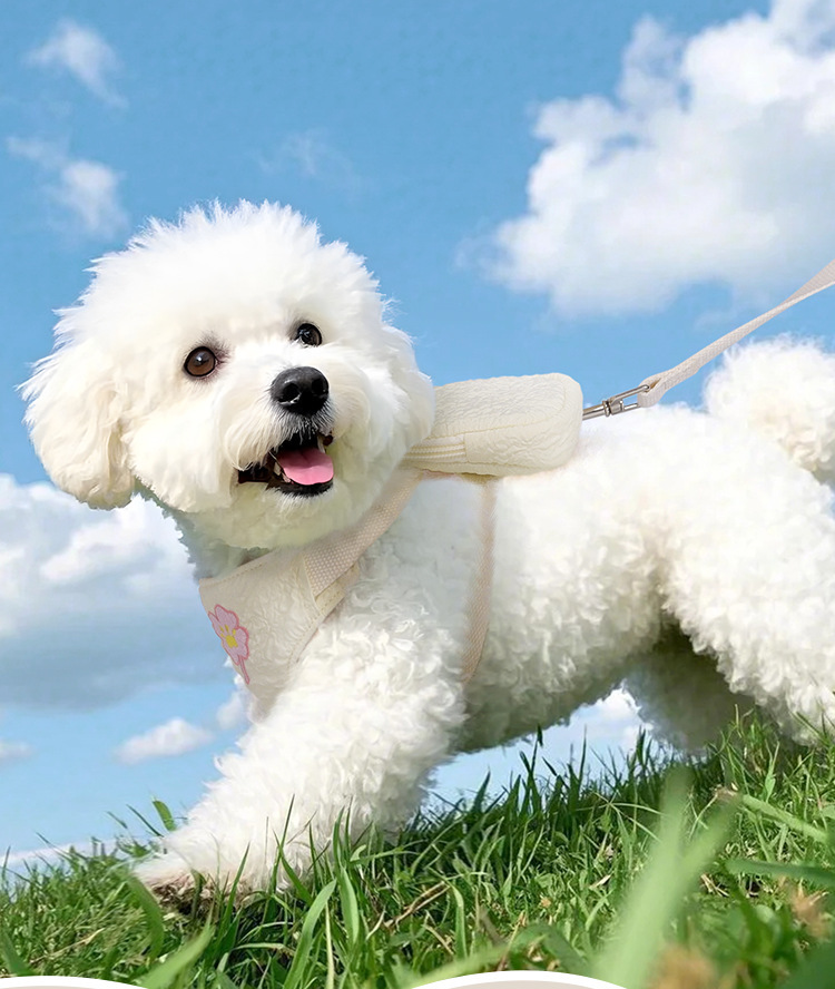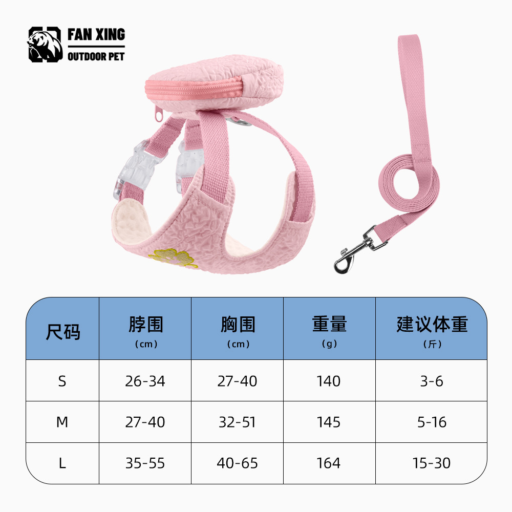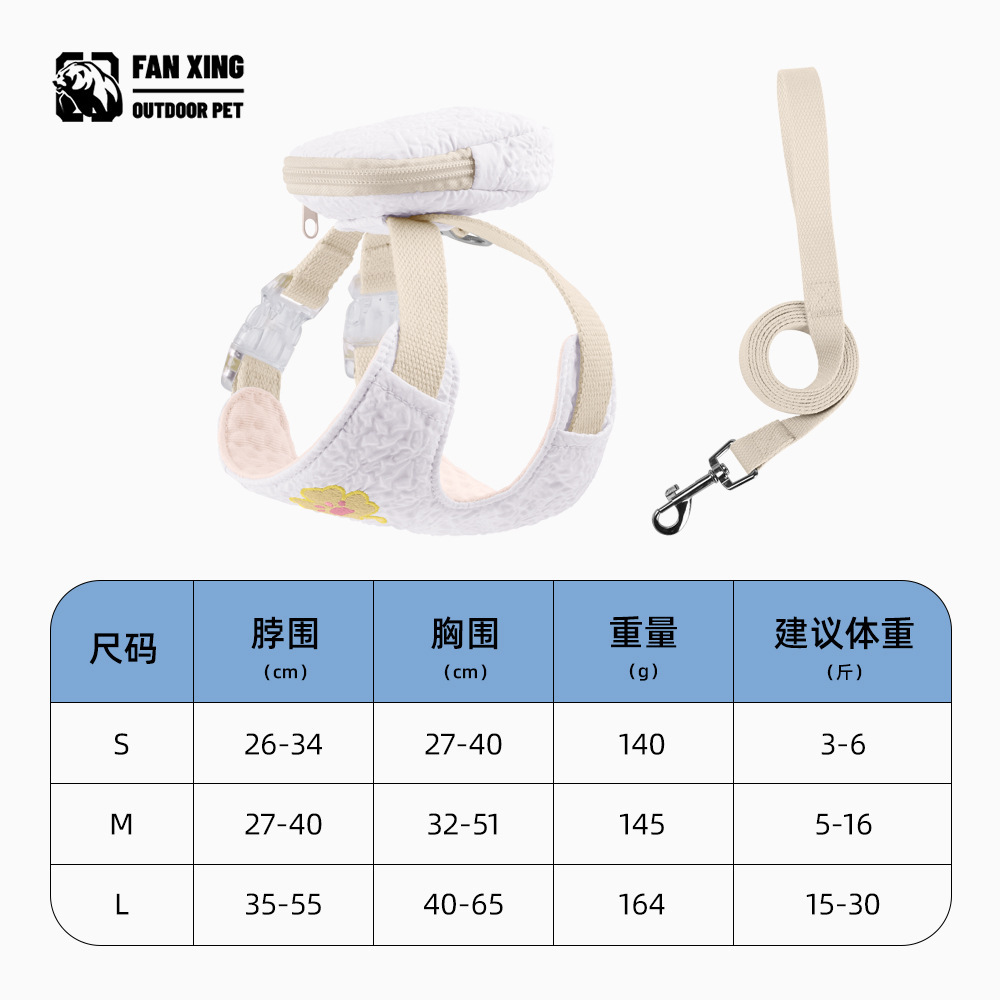 개 밖으로 신선한 꽃 수놓은 배낭 조끼 가슴 개 걷는 밧줄 고양이 밧줄 애완 동물 개 견인 밧줄