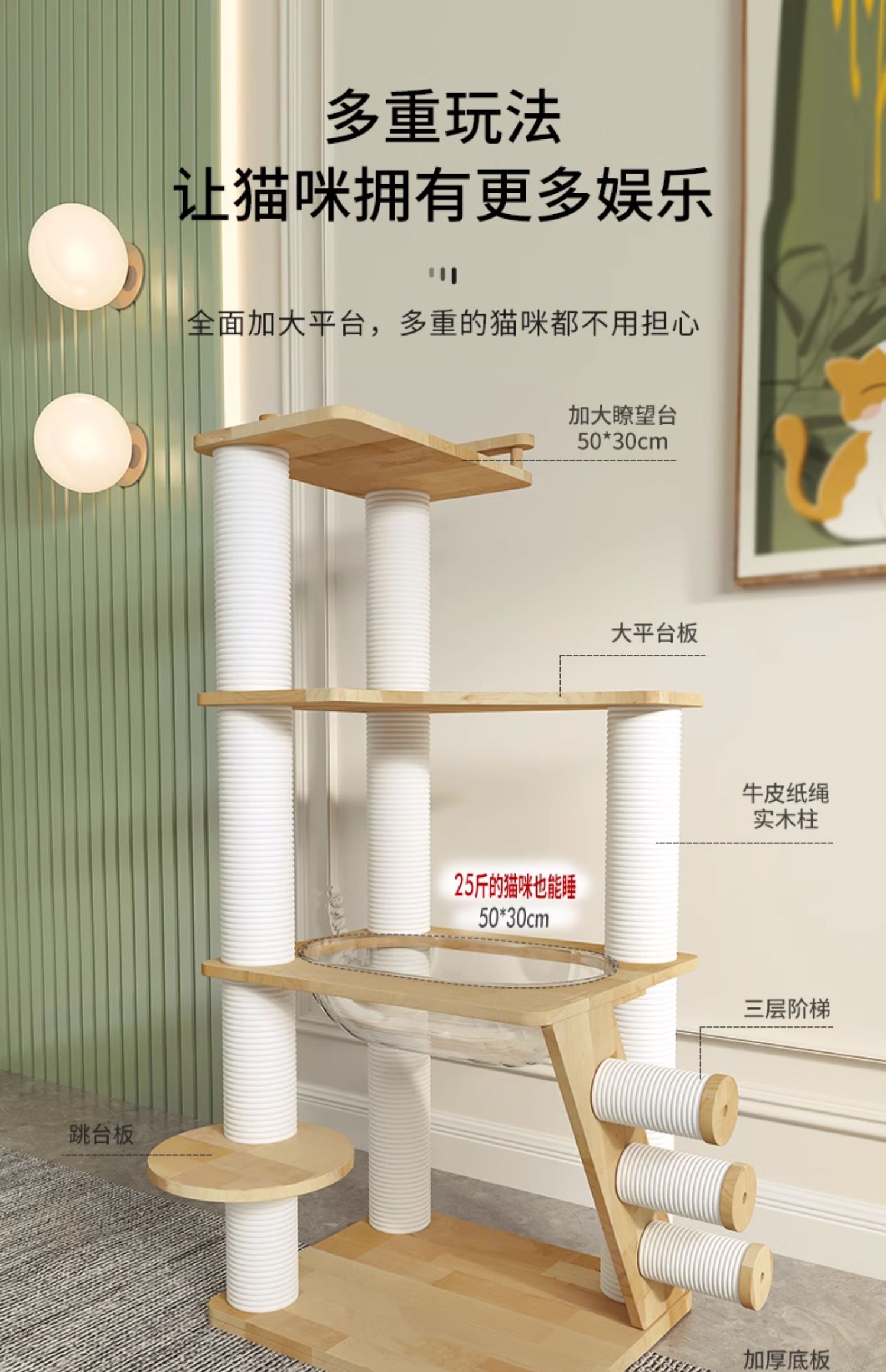 원목 고양이 클라이밍 프레임, 오크 우주 캡슐 고양이 선반, 고양이 나무 둥지, 일체형 소형, 공간 절약형, 가정용 벽걸이형