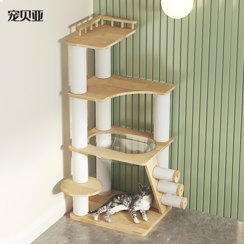 원목 고양이 클라이밍 프레임, 오크 우주 캡슐 고양이 선반, 고양이 나무 둥지, 일체형 소형, 공간 절약형, 가정용 벽걸이형스토어 가기
