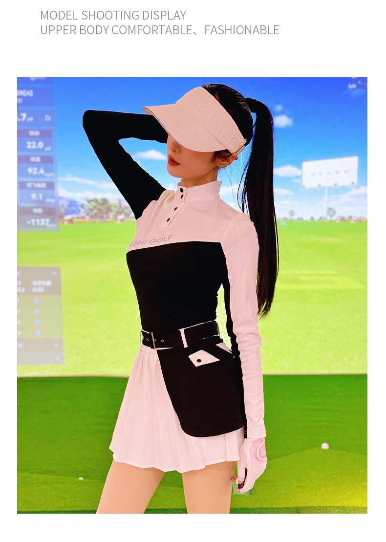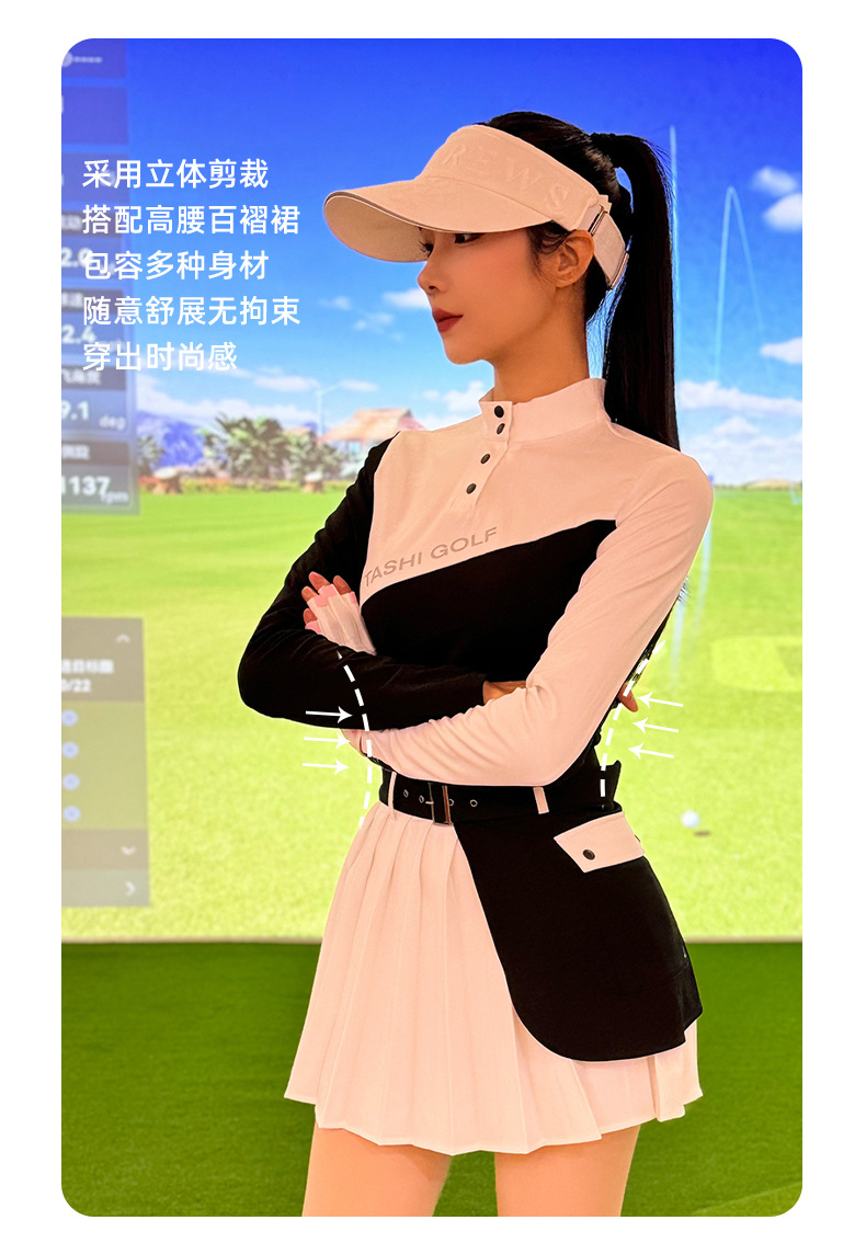TASHI GOLF 여름 신작 자외선 차단제 골프 여성용 슬림핏 스트레치 긴팔 탑 속건성 짧은 치마바지
