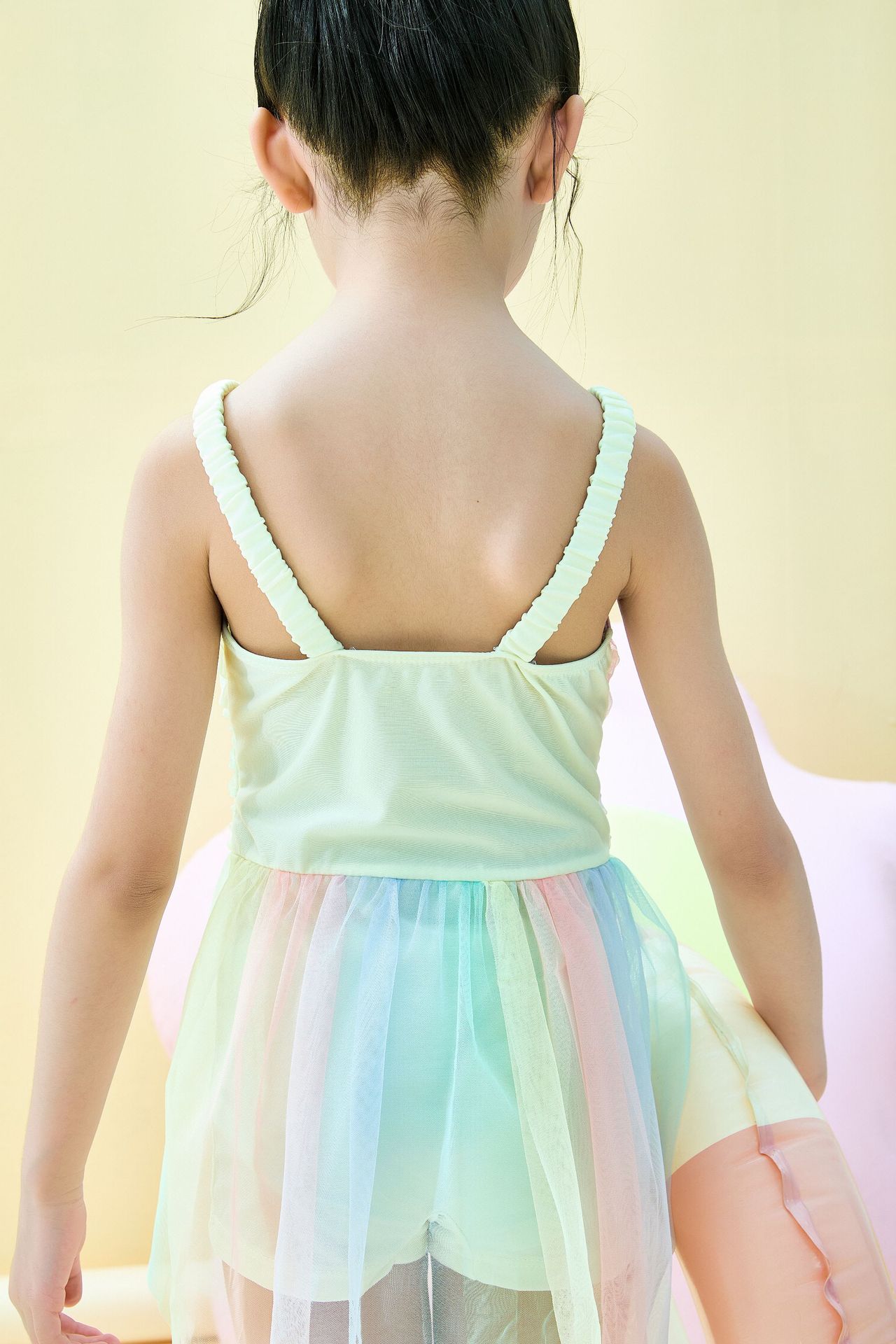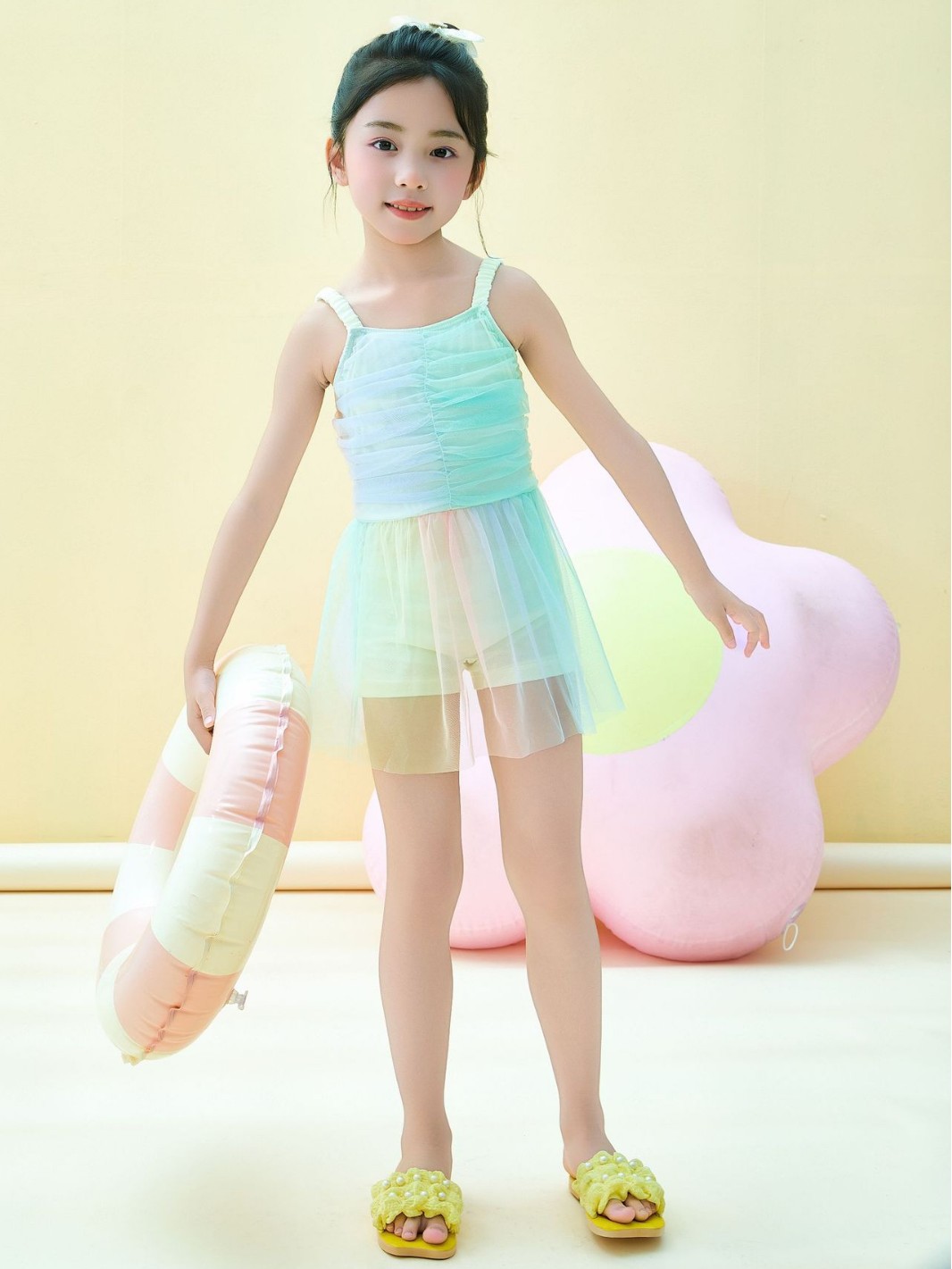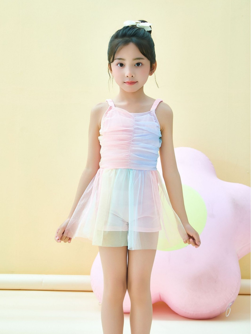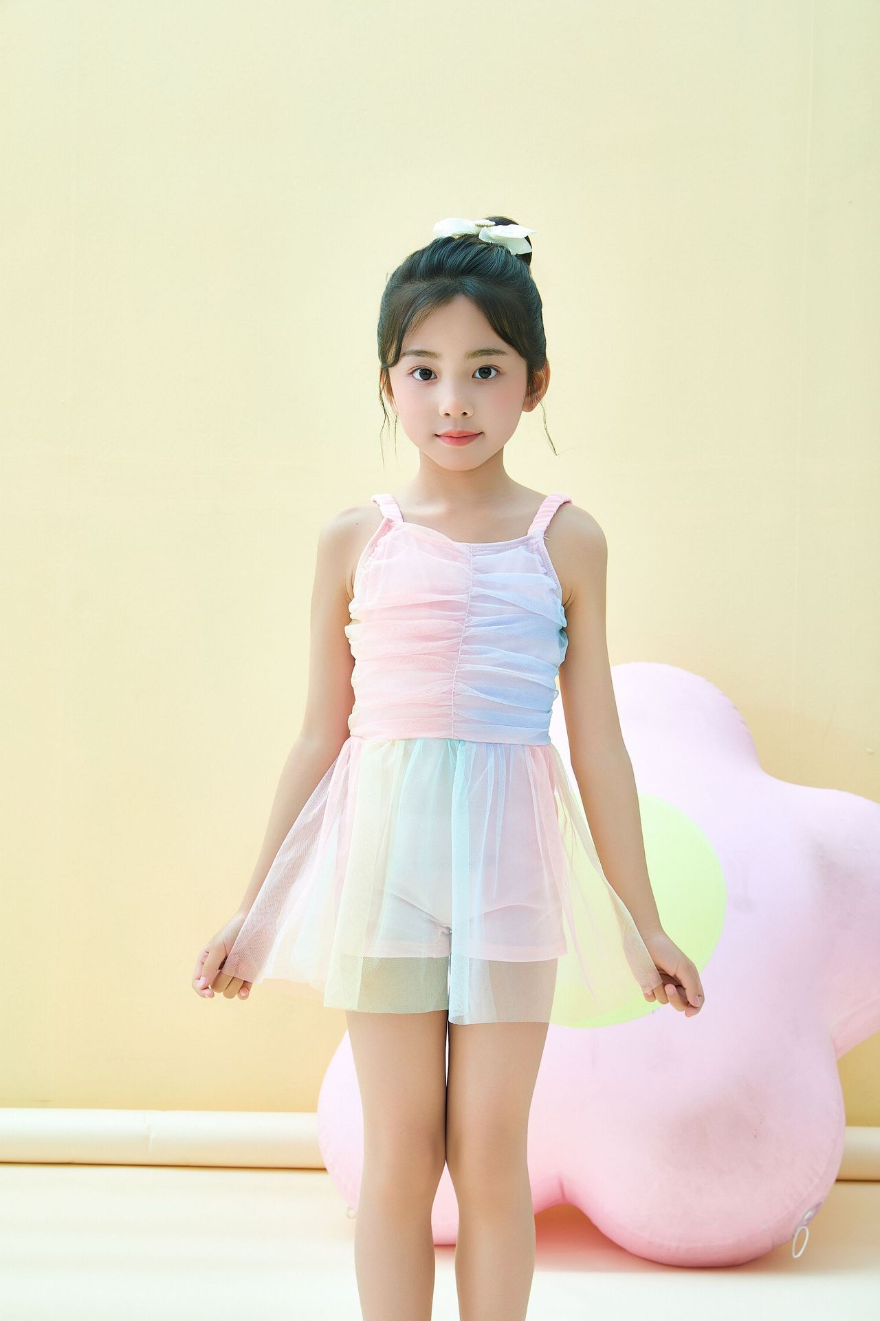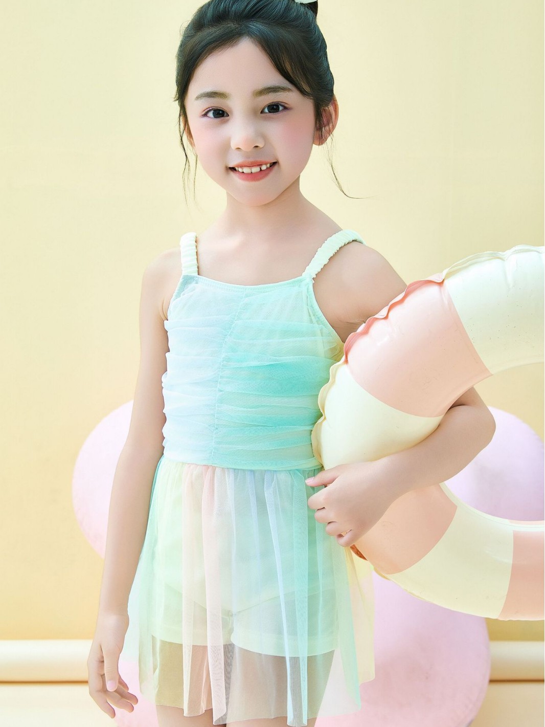 여자 원피스 수영복 여름 귀여운 거즈 스커트 민소매 2025 새로운 스타일 여자 아기 유행 어린이 수영복 속건성