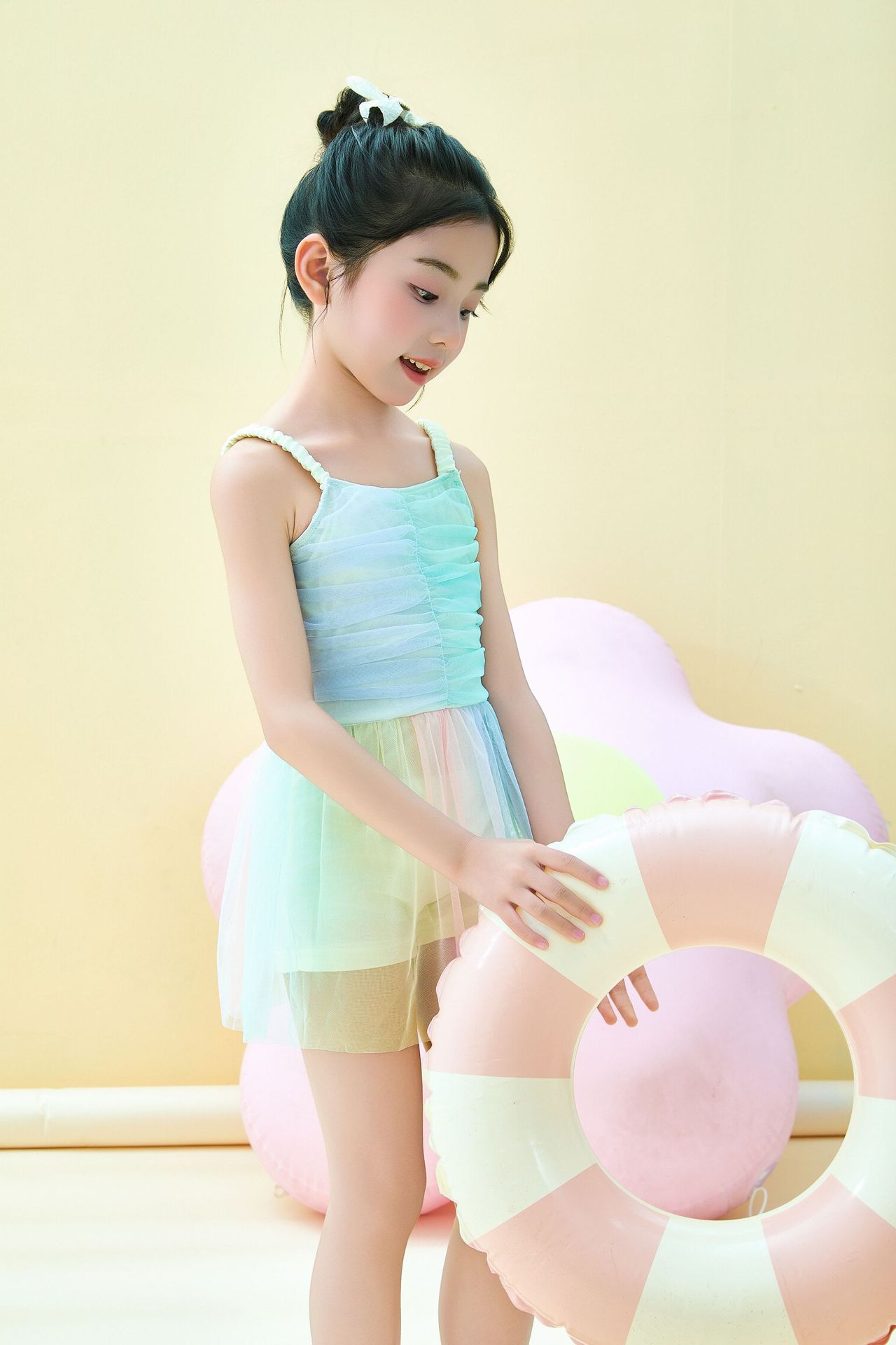 여자 원피스 수영복 여름 귀여운 거즈 스커트 민소매 2025 새로운 스타일 여자 아기 유행 어린이 수영복 속건성스토어 가기