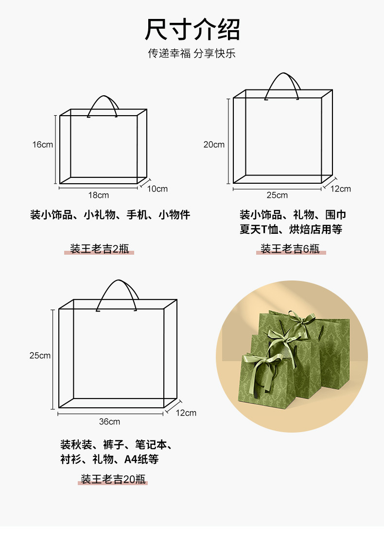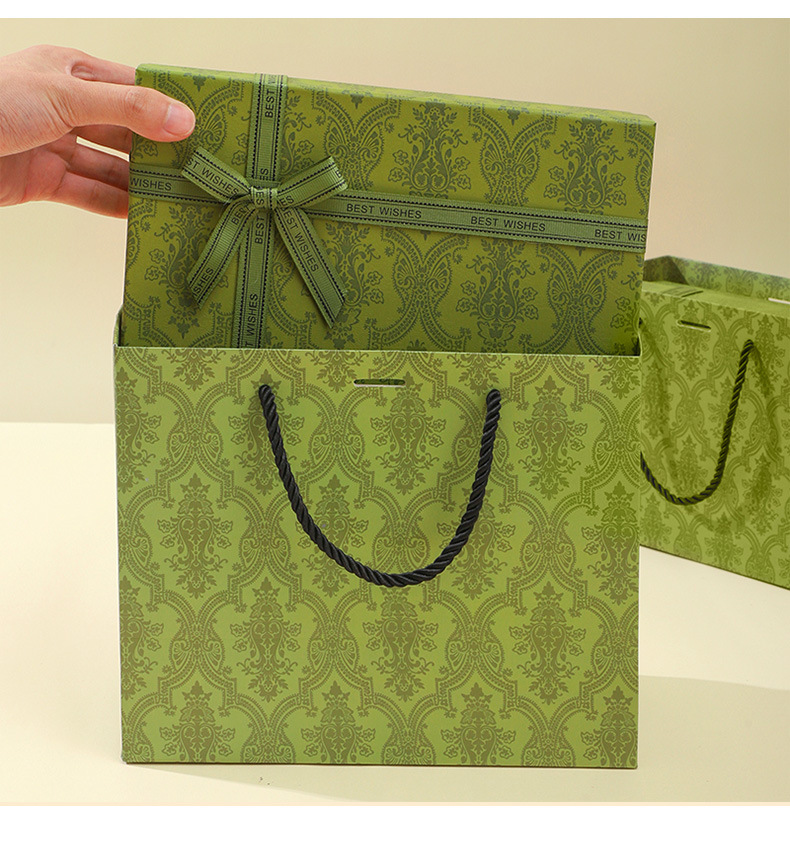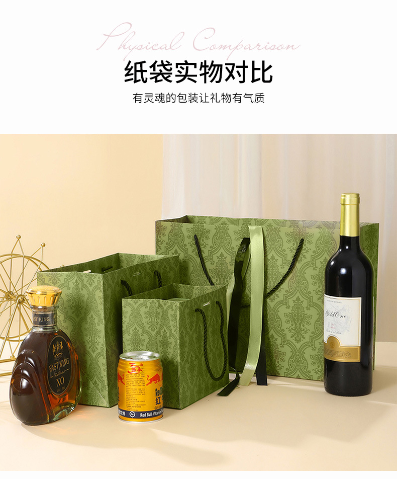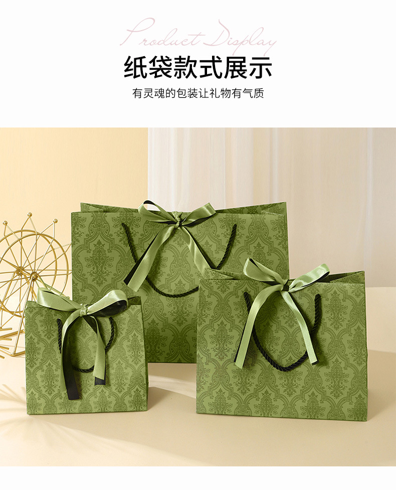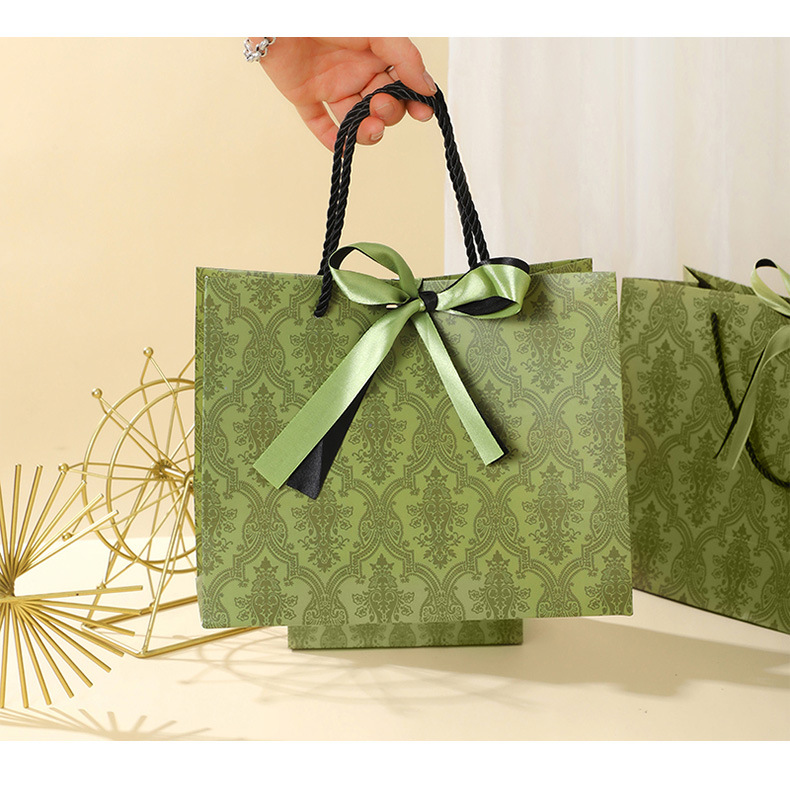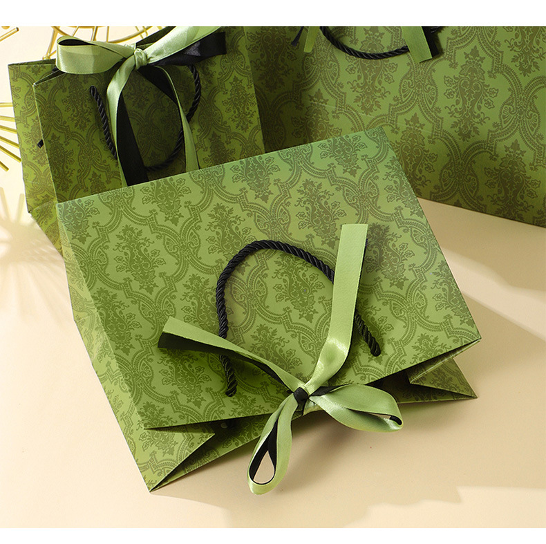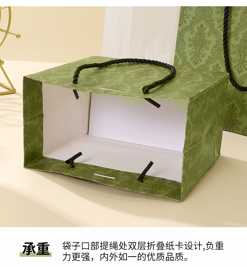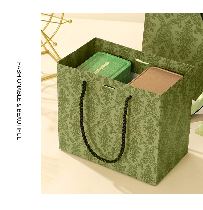 국경 구찌 녹색 휴대용 선물 가방 손 선물 포장 가방 가벼운 고급 의류 사탕 보관 흰색 골판지 가방