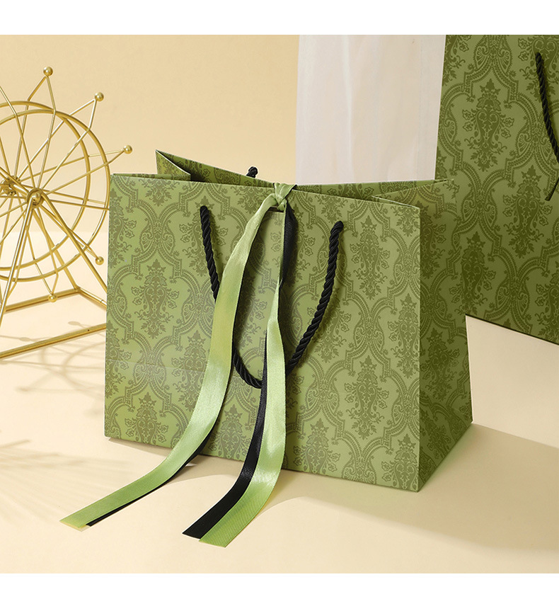 국경 구찌 녹색 휴대용 선물 가방 손 선물 포장 가방 가벼운 고급 의류 사탕 보관 흰색 골판지 가방스토어 가기
