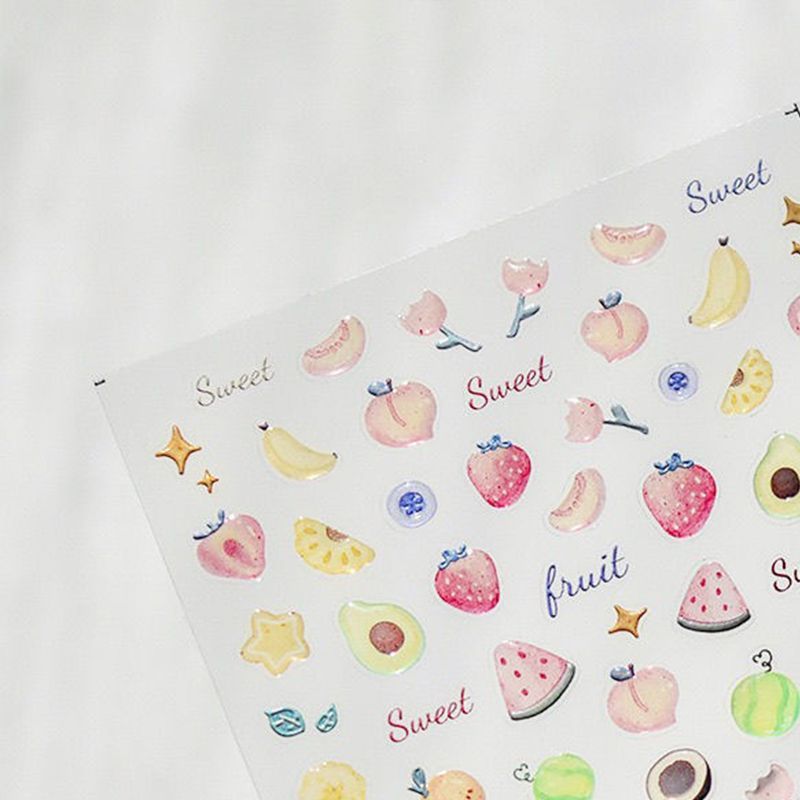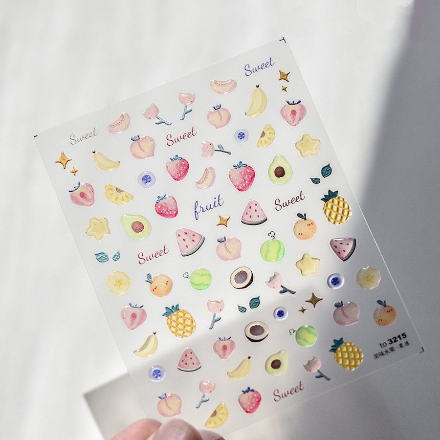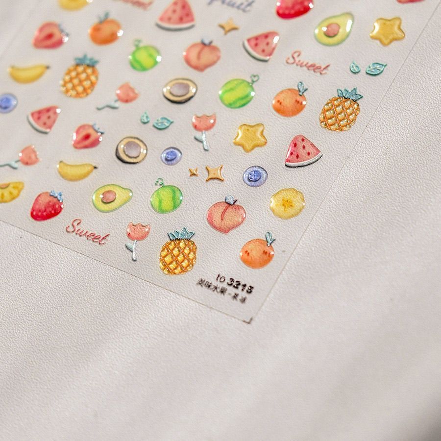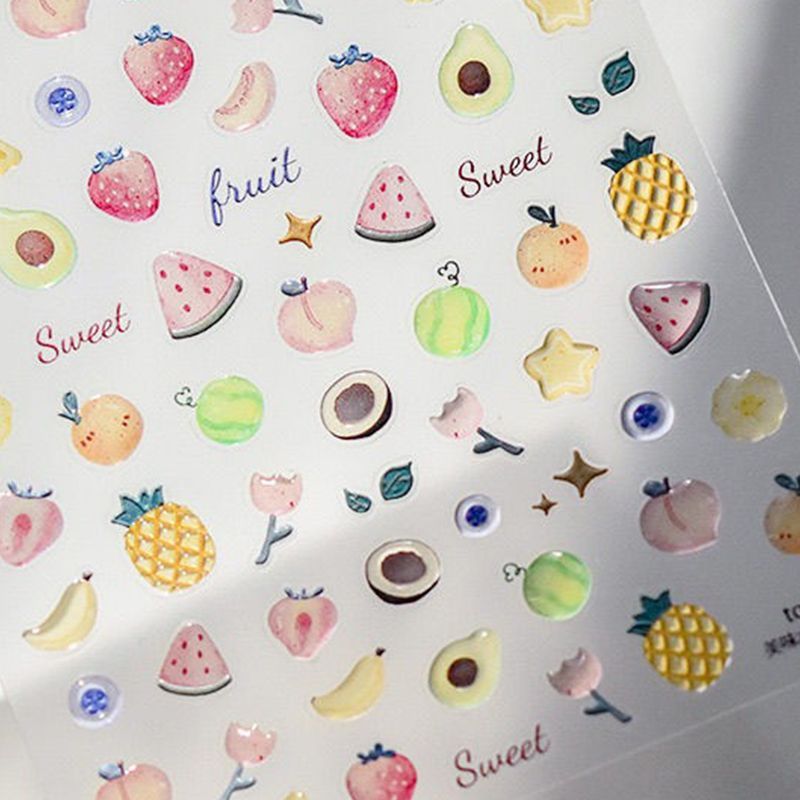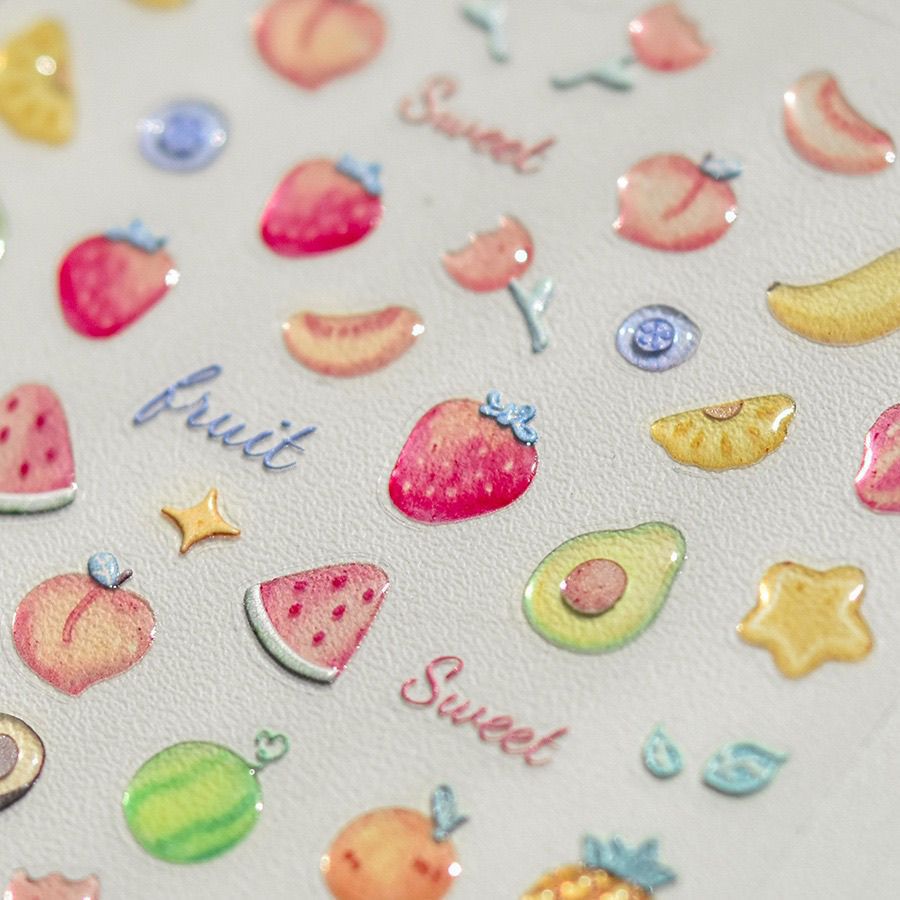 여름 다채로운 도파민 과일 수박 딸기 입체 구호 네일 스티커 만화 짧은 네일 스티커