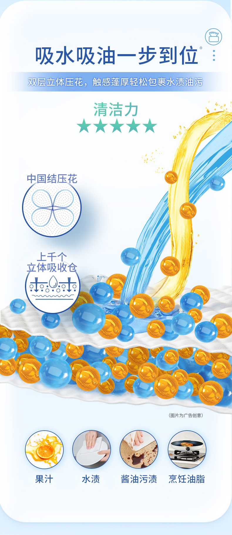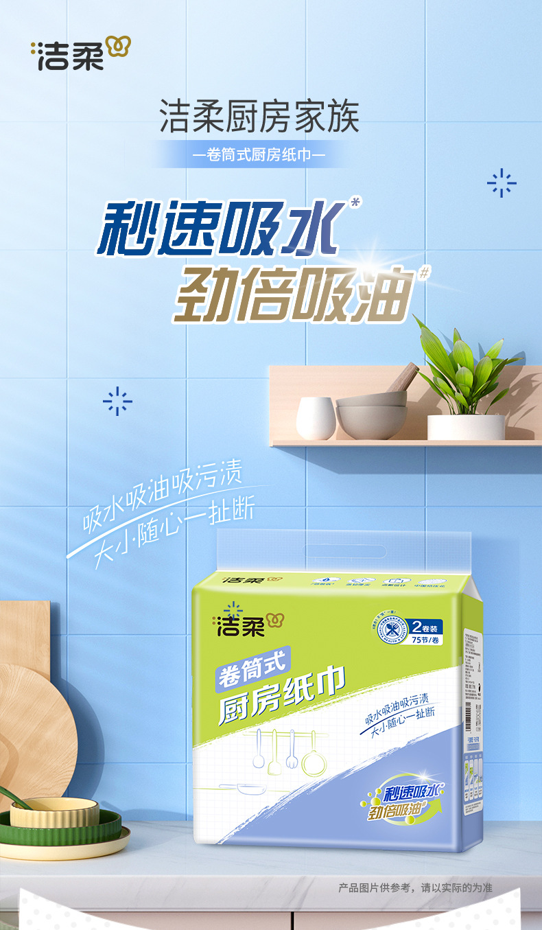 깨끗한 부드러운 부엌 롤 종이 75 섹션 2 롤 냅킨 기름 흡수성 화장지 슈퍼 터프 JK008스토어 가기