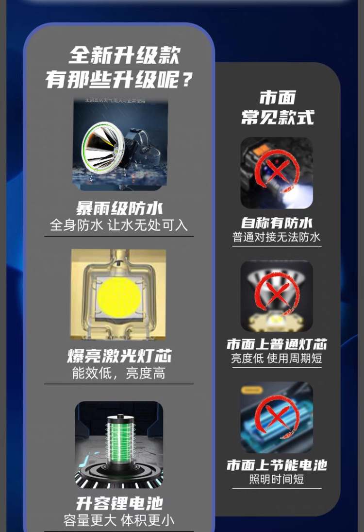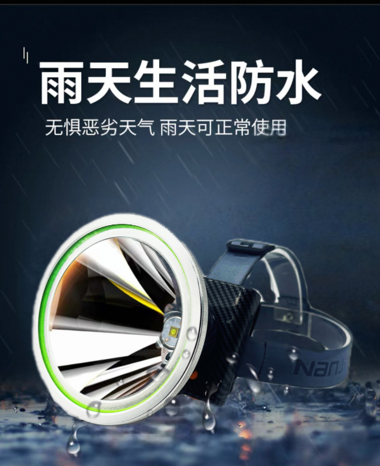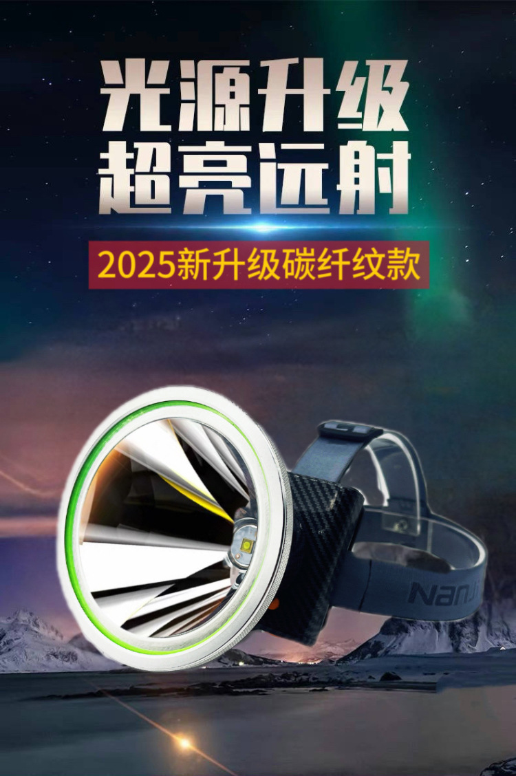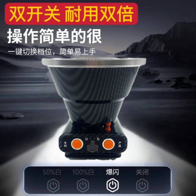 탄소 섬유 패턴 레이저 총 강한 빛 헤드 램프 헤드 장착 매우 밝은 장거리 대형 조리개 장거리 야외 방수 리튬 배터리