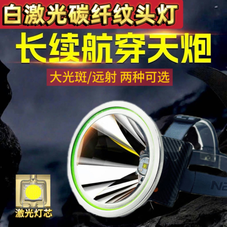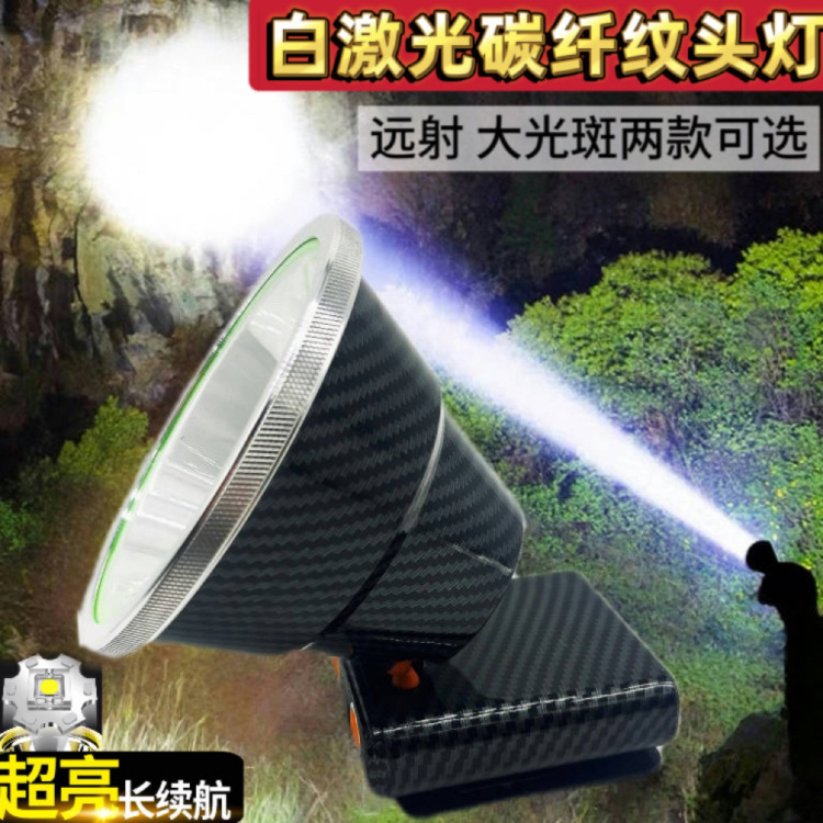 탄소 섬유 패턴 레이저 총 강한 빛 헤드 램프 헤드 장착 매우 밝은 장거리 대형 조리개 장거리 야외 방수 리튬 배터리스토어 가기