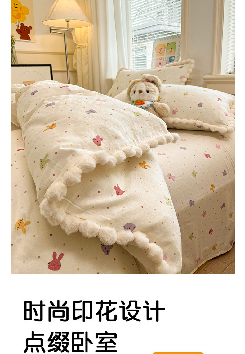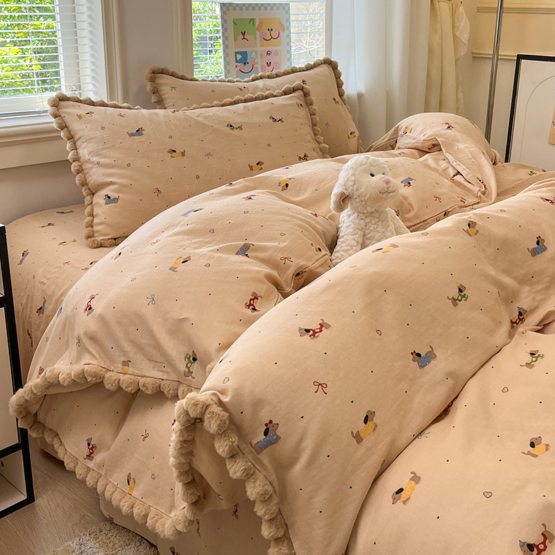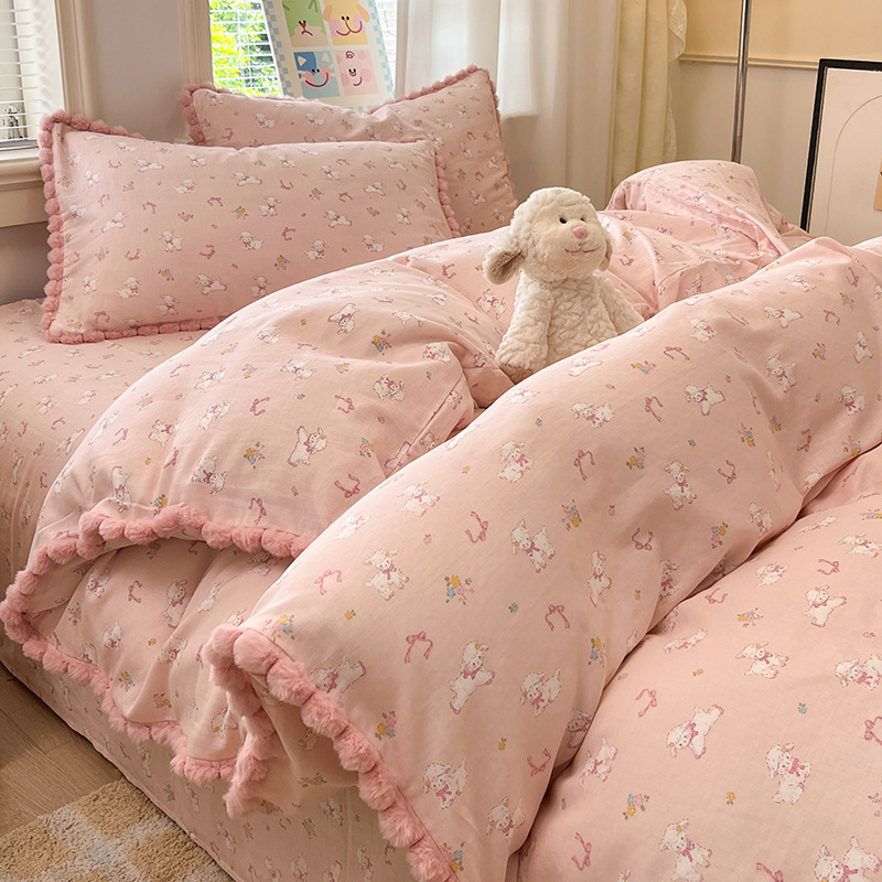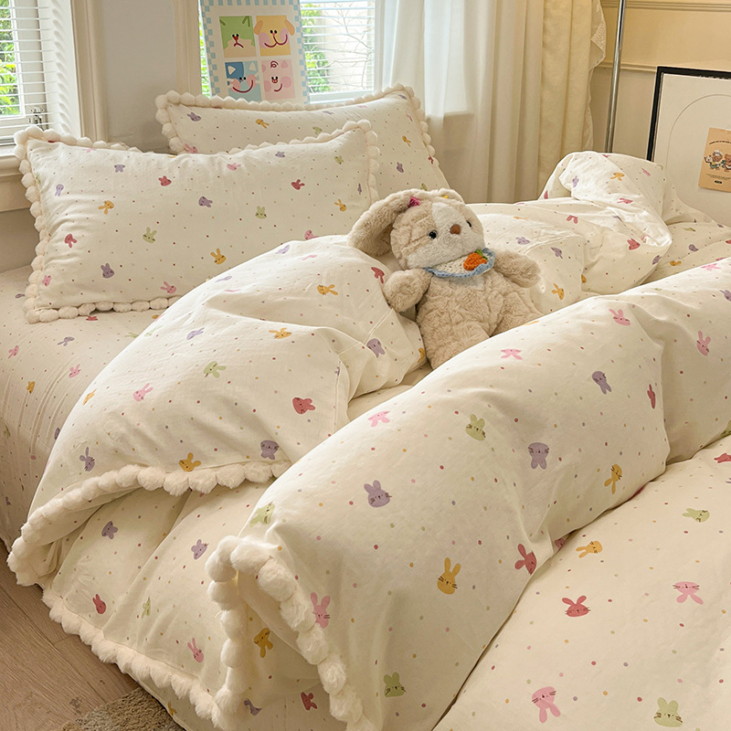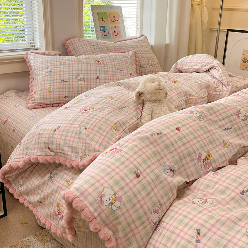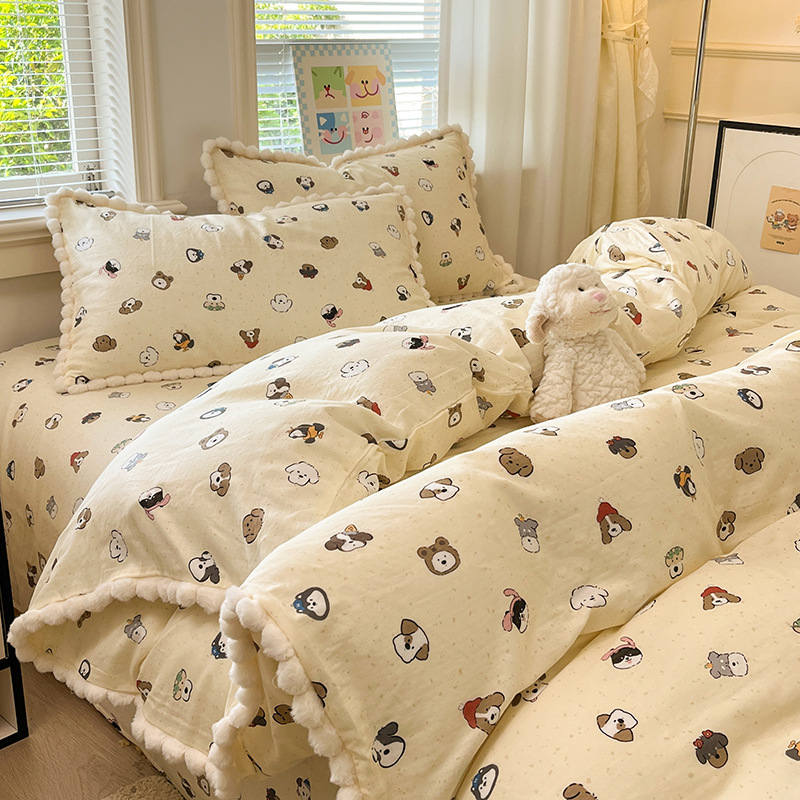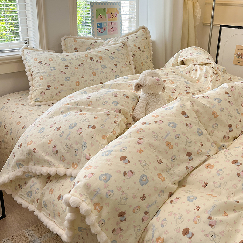 순면 더블 레이어 원사 이불 커버 싱글 피스 150×200×230 만화 가정용 순면 침대 시트와 매트리스 커버 4피스 세트스토어 가기