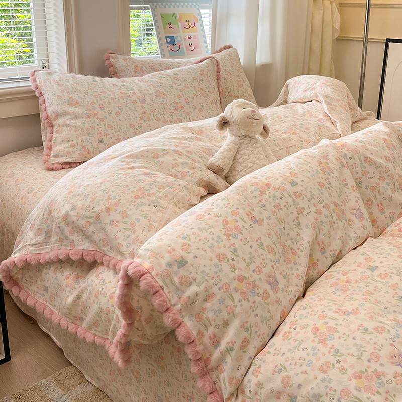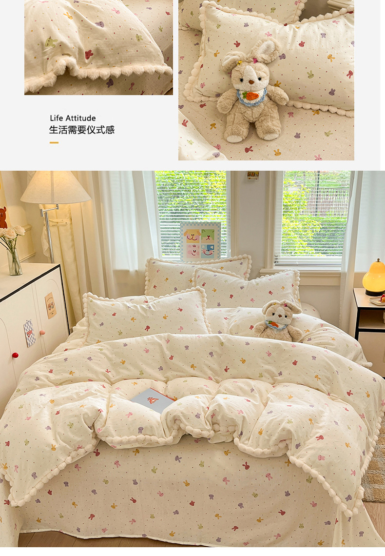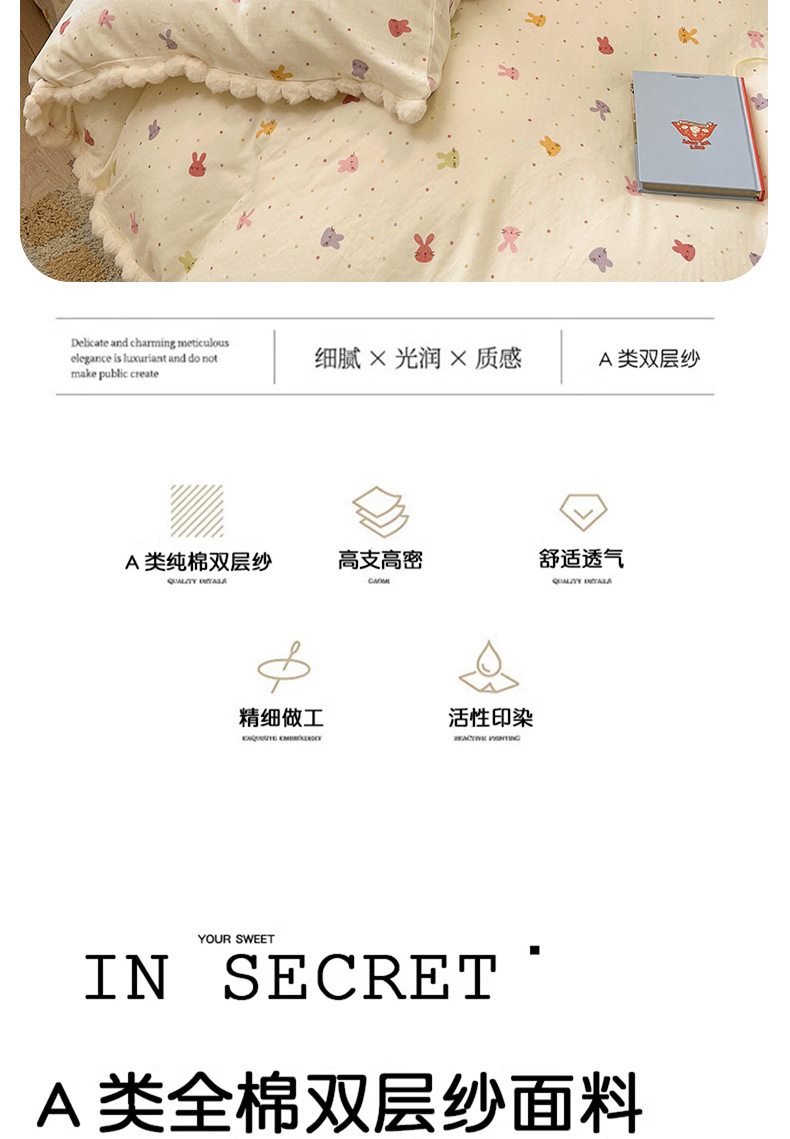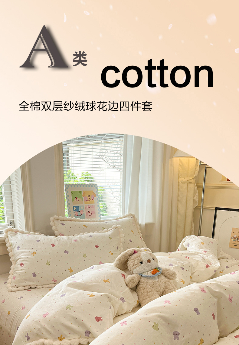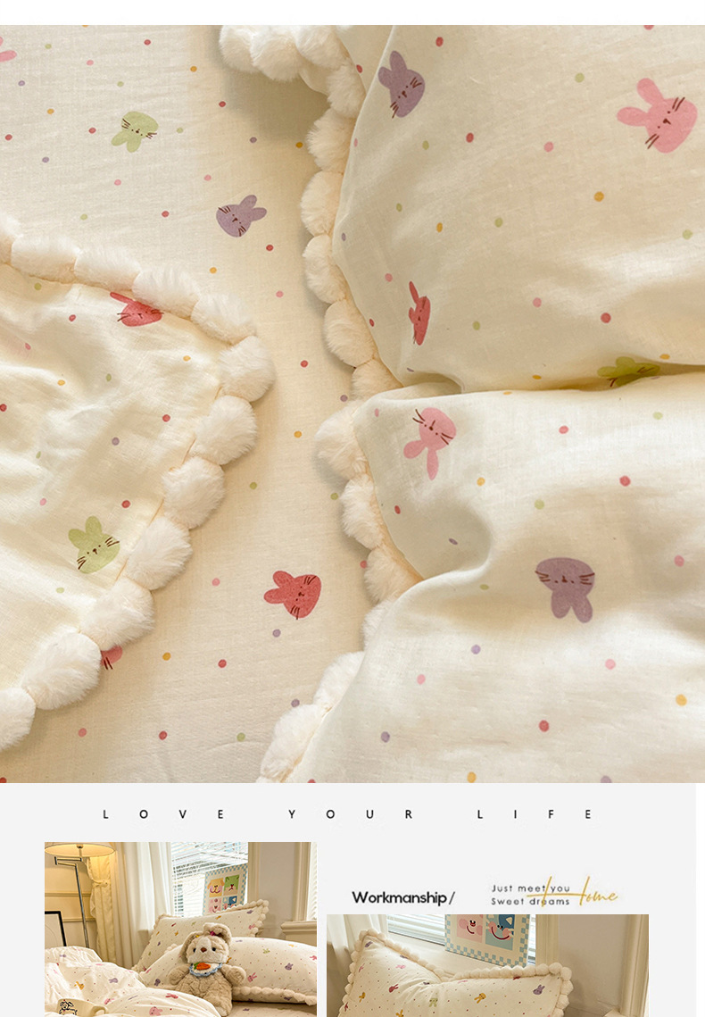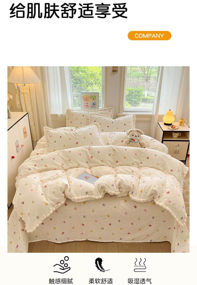 순면 더블 레이어 원사 이불 커버 싱글 피스 150×200×230 만화 가정용 순면 침대 시트와 매트리스 커버 4피스 세트스토어 가기