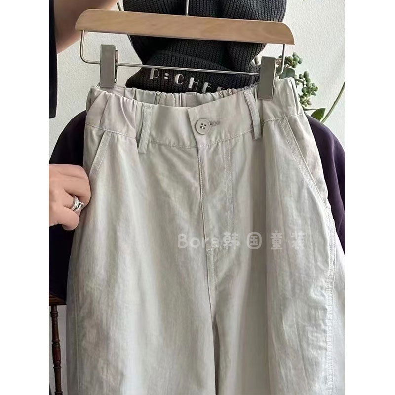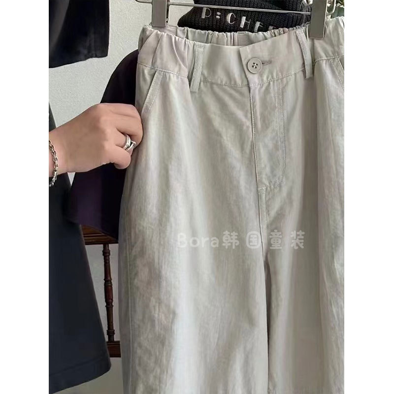 소년 바지 가을 얇은 2024 새로운 서양 스타일 얇은 서양식 어린이 거리 튀김 바지 소녀 캐주얼 트렌디 바지