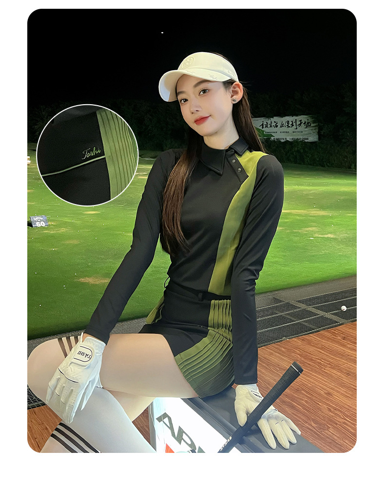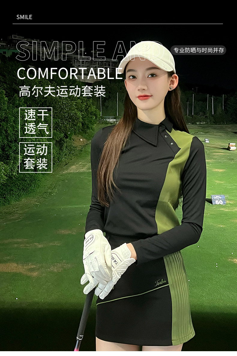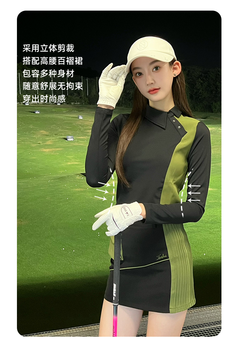 TASHI 골프 의류 여성 가을 속건성 긴팔 탑 슬림 하이 엘라스틱 티셔츠 힙 커버 짧은 스커트 슈트스토어 가기