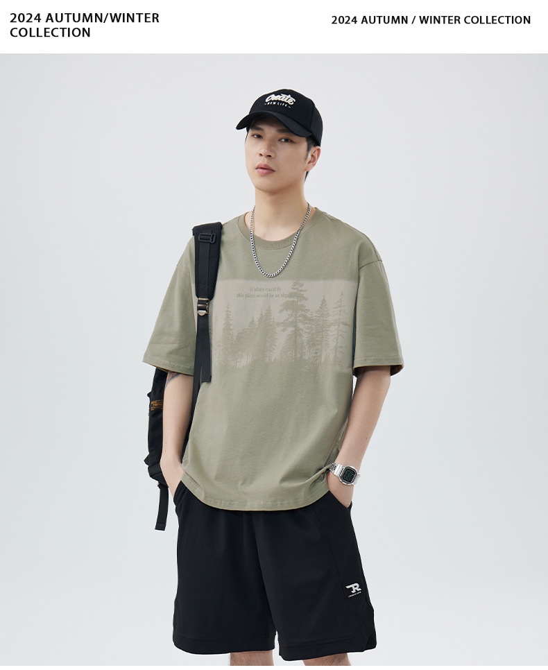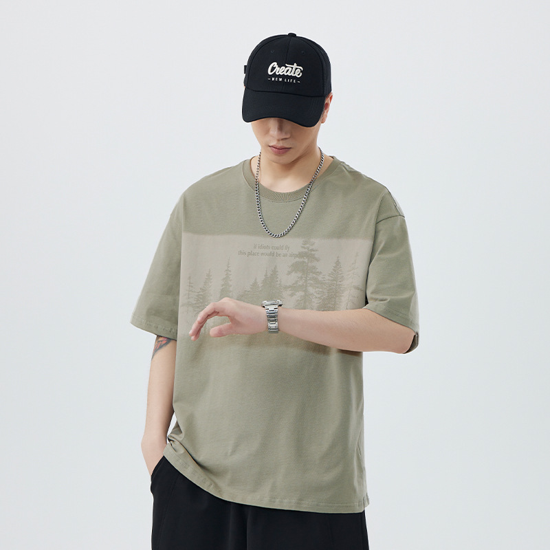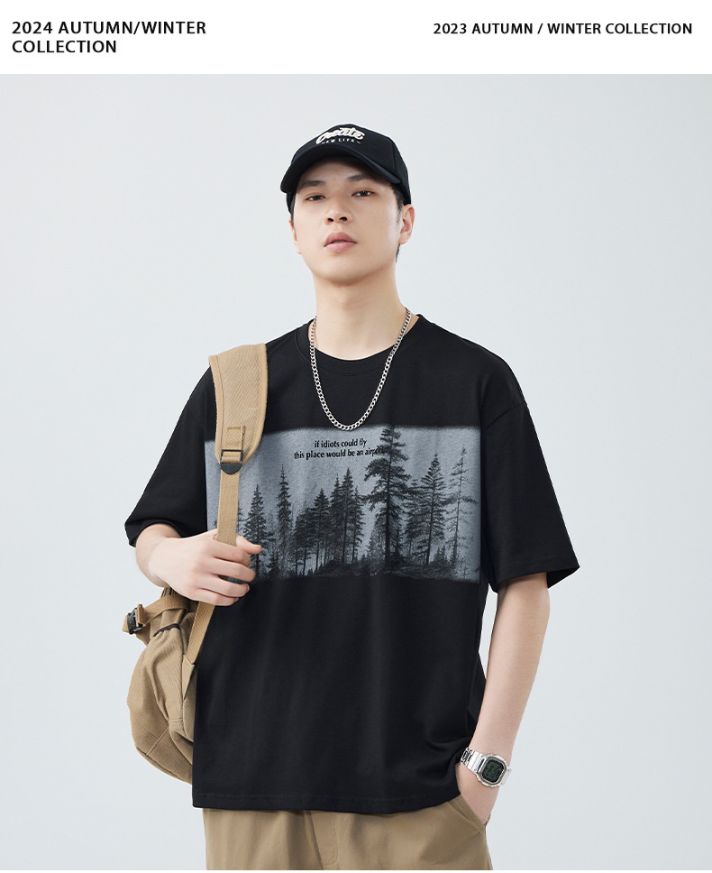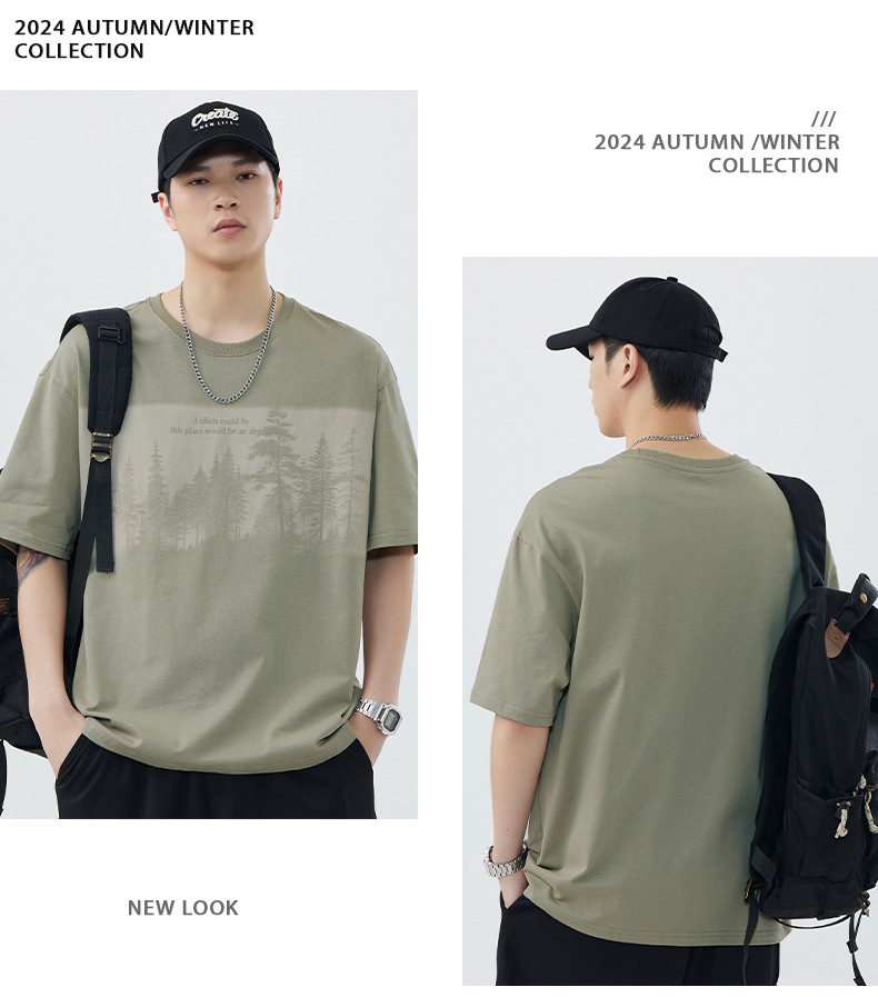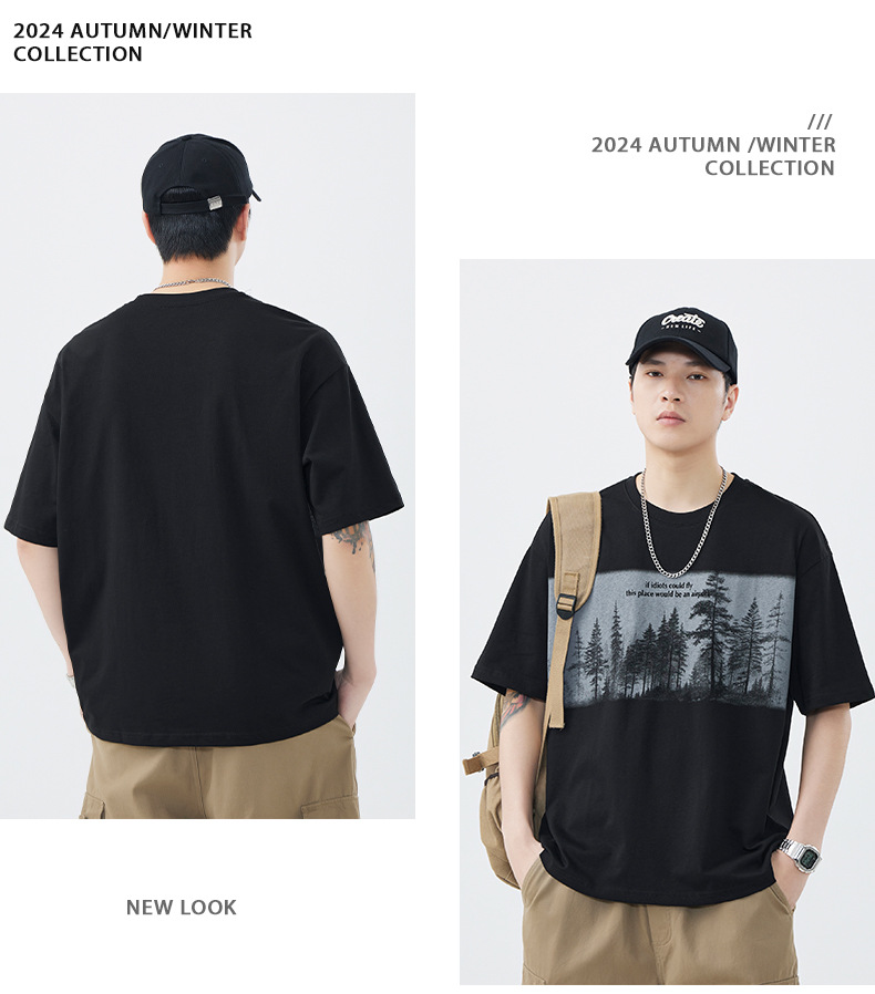 여름 티셔츠 남성용 Plutton 핸섬 인쇄 캐주얼 올매치 느슨한 코튼 편안한 라운드 넥 반팔 2024 뉴 남성용 탑스토어 가기