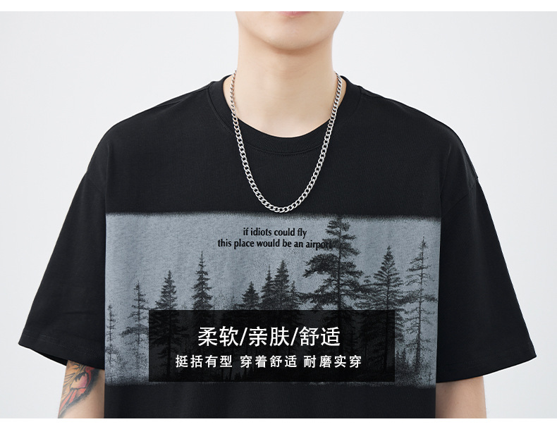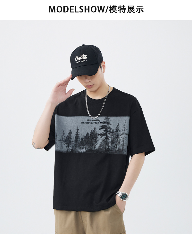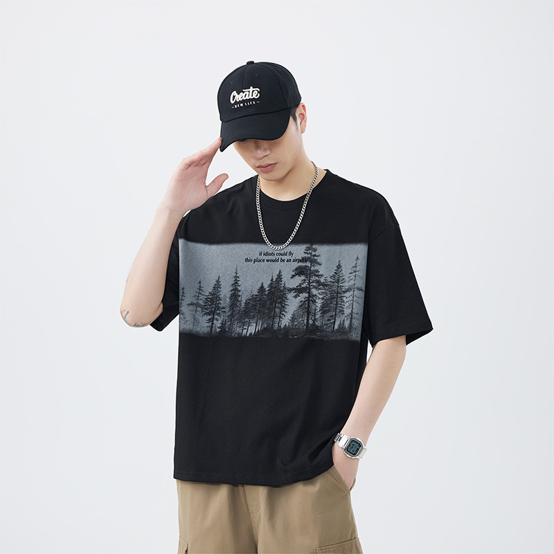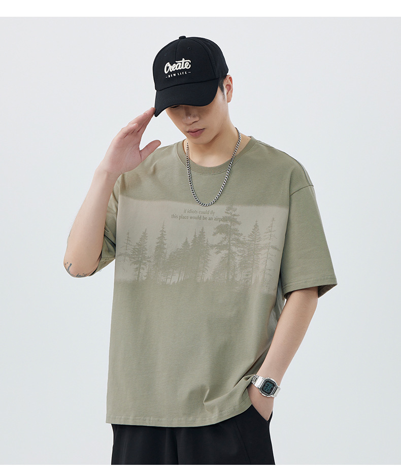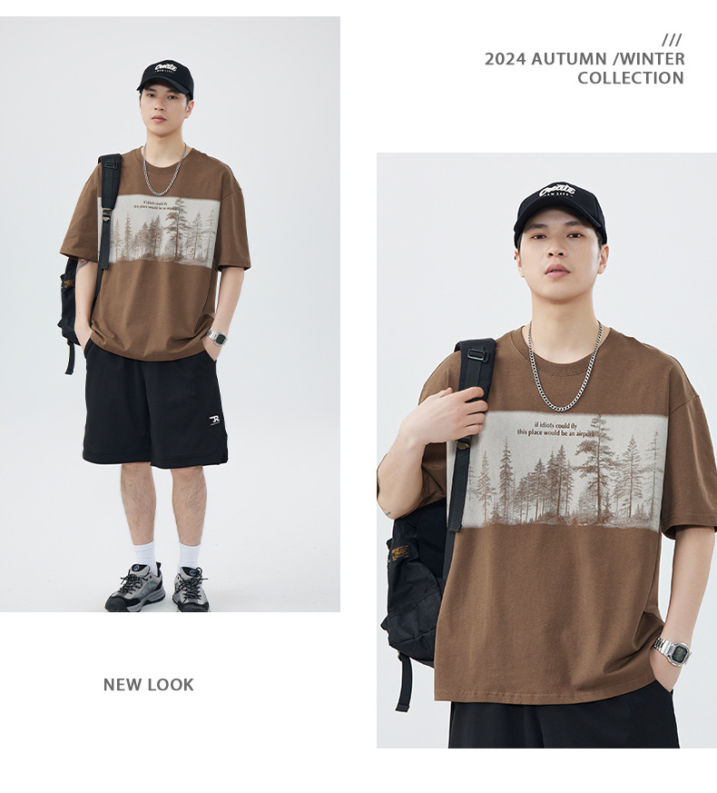 여름 티셔츠 남성용 Plutton 핸섬 인쇄 캐주얼 올매치 느슨한 코튼 편안한 라운드 넥 반팔 2024 뉴 남성용 탑스토어 가기