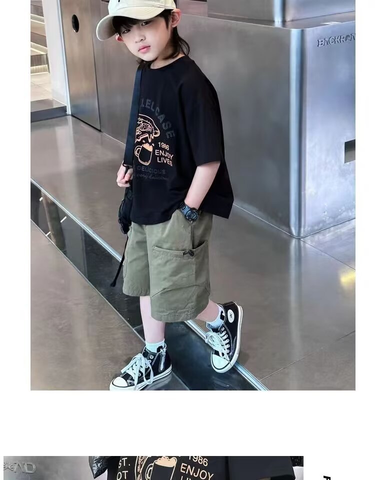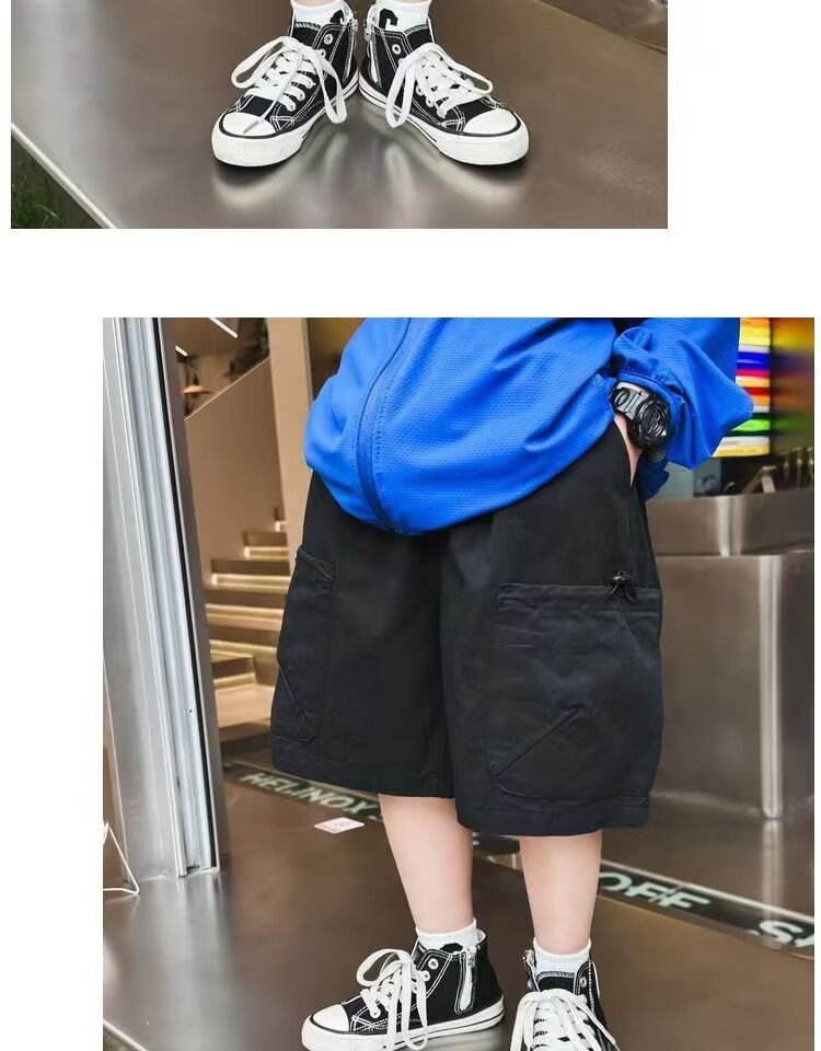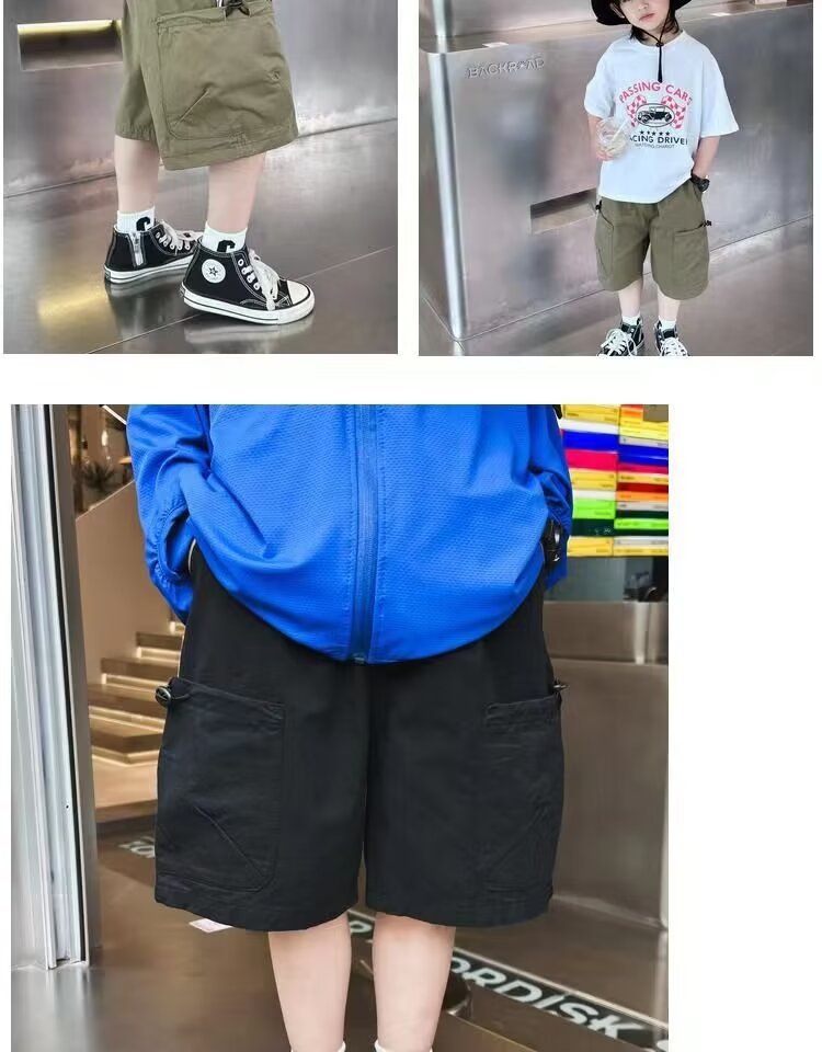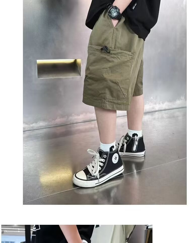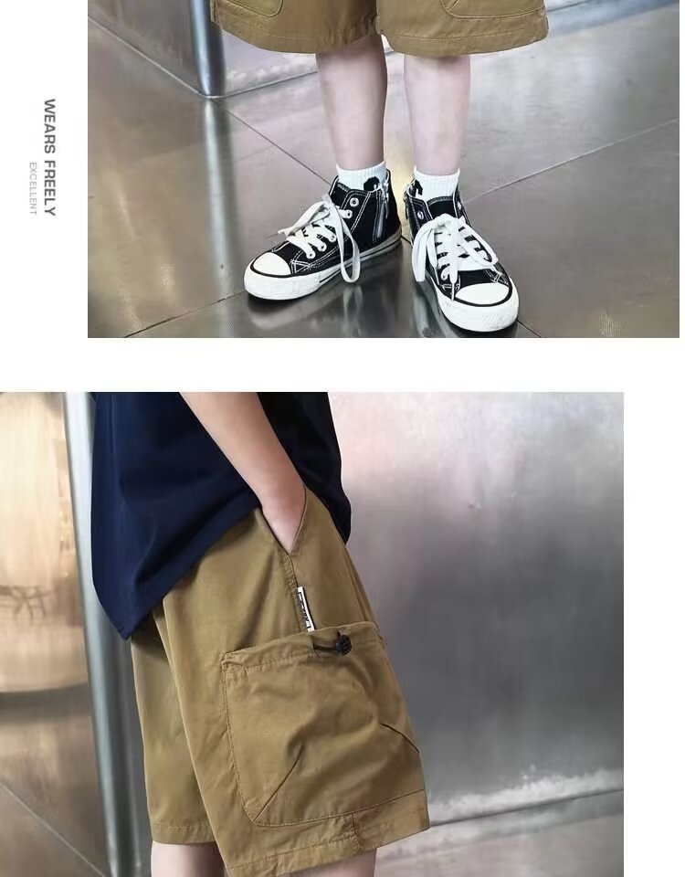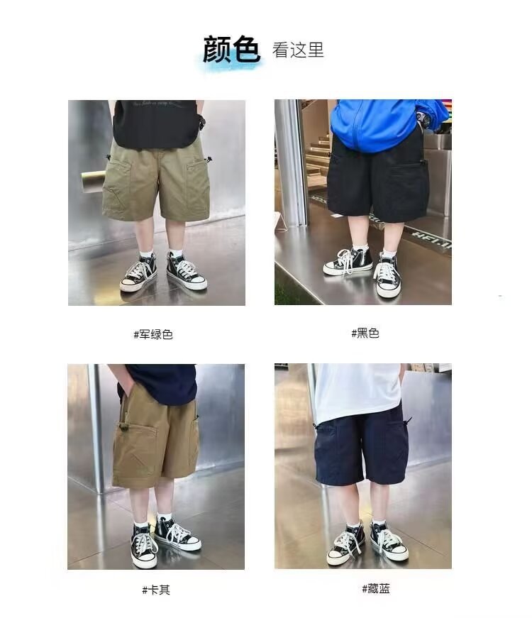 남학생 작업반바지 2024 년 여름 중대형 어린이 반바지 어린이 캐주얼 바지 소년 반바지 트렌디한 외복